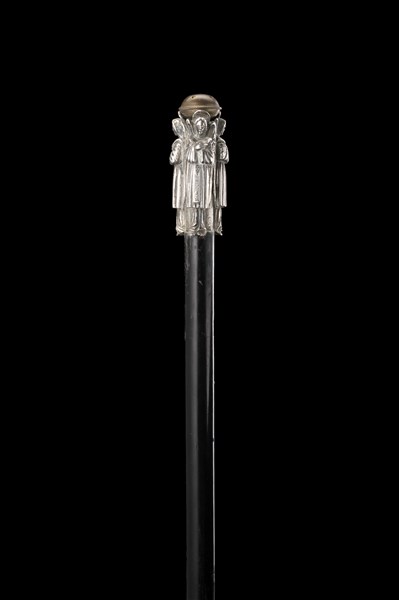 Bastone da prelato in legno ebanizzato con ghiera in argento decorata da tre an