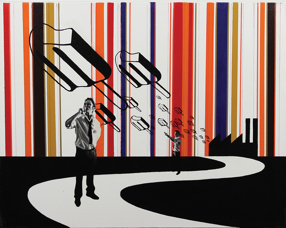 Buglisi Andrea Too many bugs #7, 2007 acrilico su tela, cm 40x50 firmato, datato e intitolato al retro, autentica dell'artista su fotografia