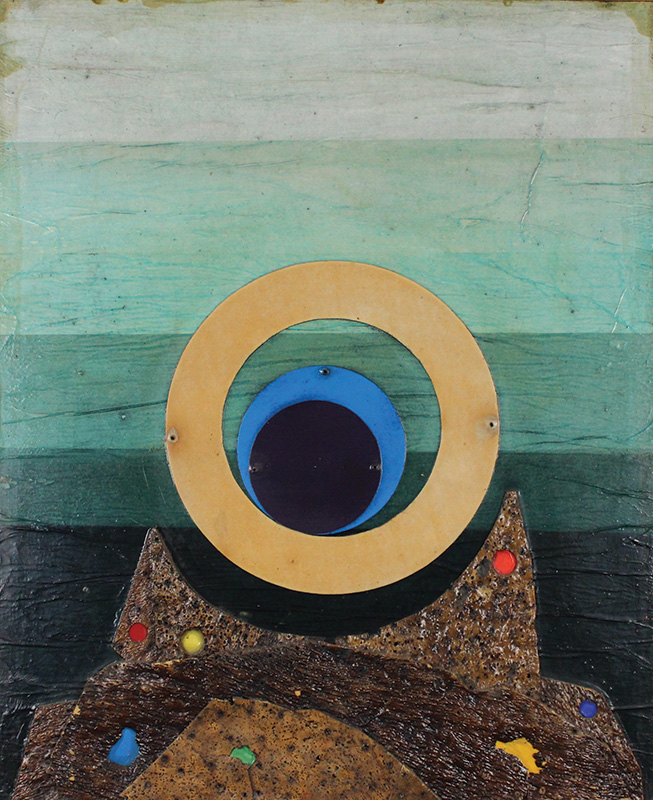 Crippa Roberto Senza titolo, 1970 collage di sugheri su tavola, cm 73x60, firmato al retro, etichetta Arte Fiera al retro, autentica di Roberto Crippa junior su fotografia