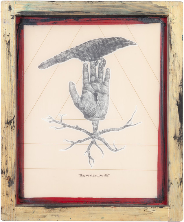 screenprint on a burned wood 22,83x18,89 in