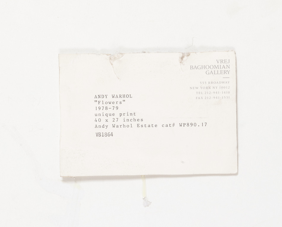 on the reverse: stamp of Authenticated Estate of Andy Warhol n.A694.106 / WP 890.17
