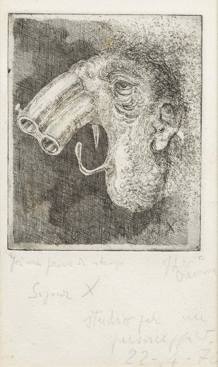 19,5x11,5 foglio, 12,1x99 acquaforte prima prova d'artista
