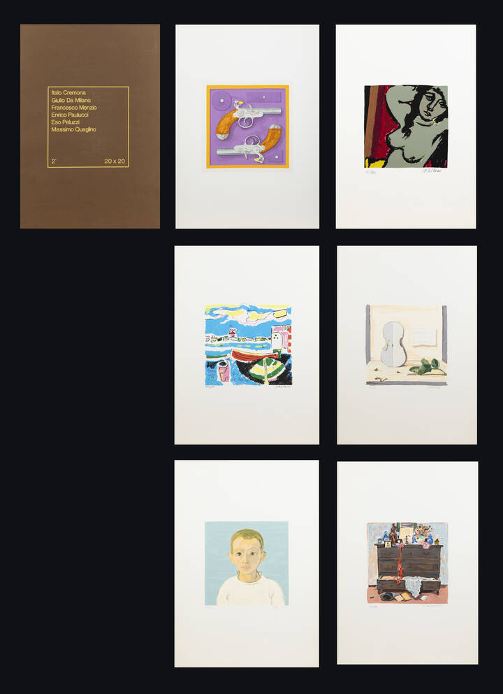- Italo Cremona, "Pistole da duello", 50x34,5 foglio, 20x20 serigrafia a 38 colori. Opera inventariata (Archivio Storico Italo Cremona) con il n. IG 259 (etichetta al retro)