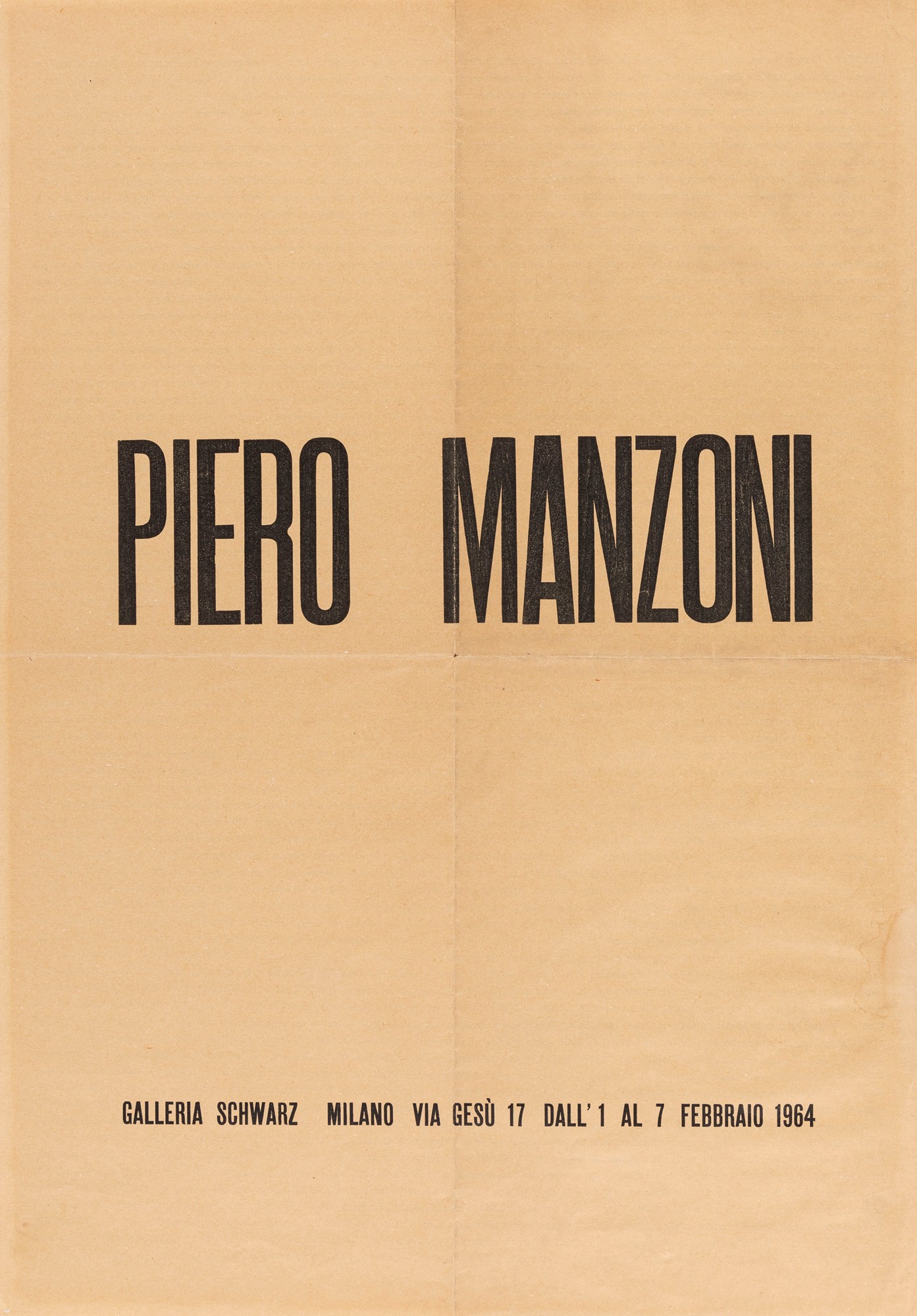 manifesto della mostra tenutasi presso la Galleria Schwarz, Milano dal 1 al 7 febbraio 1964