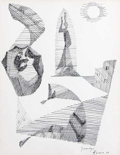 LEOPOLD SURVAGE Willmanstrad 1879 - Parigi 1968 Senza titolo, 1950 china su carta cm. 35x30, firma, anno e località (Roma) in basso a destra.