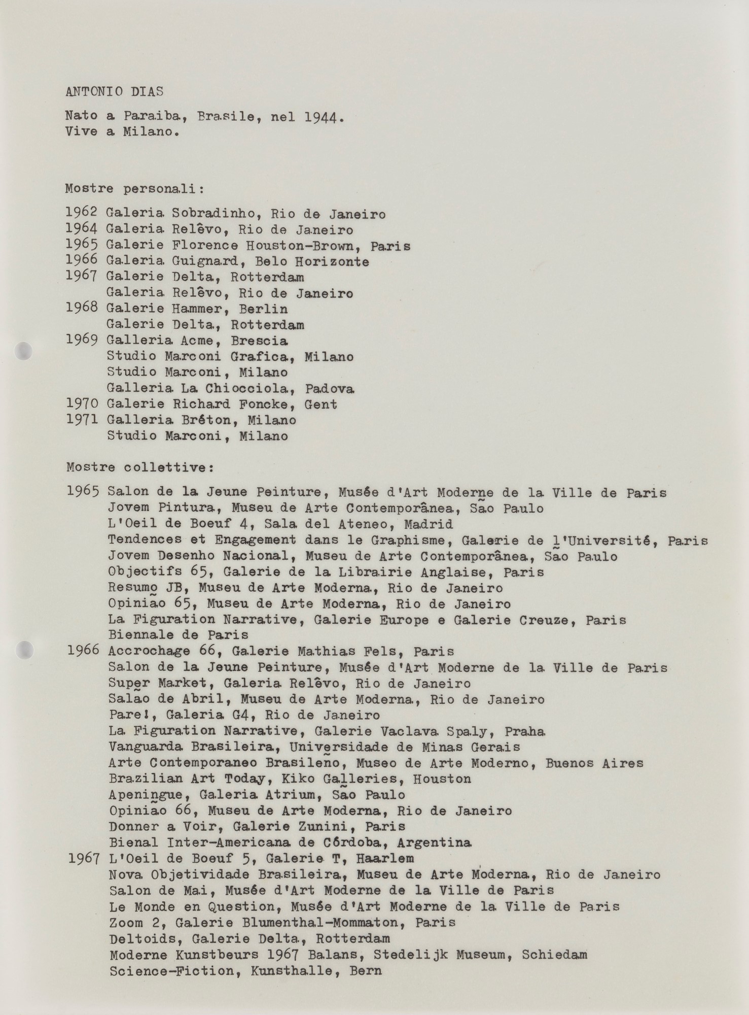Il lotto contiene invito alla mostra personale Antonio Dias del 1971