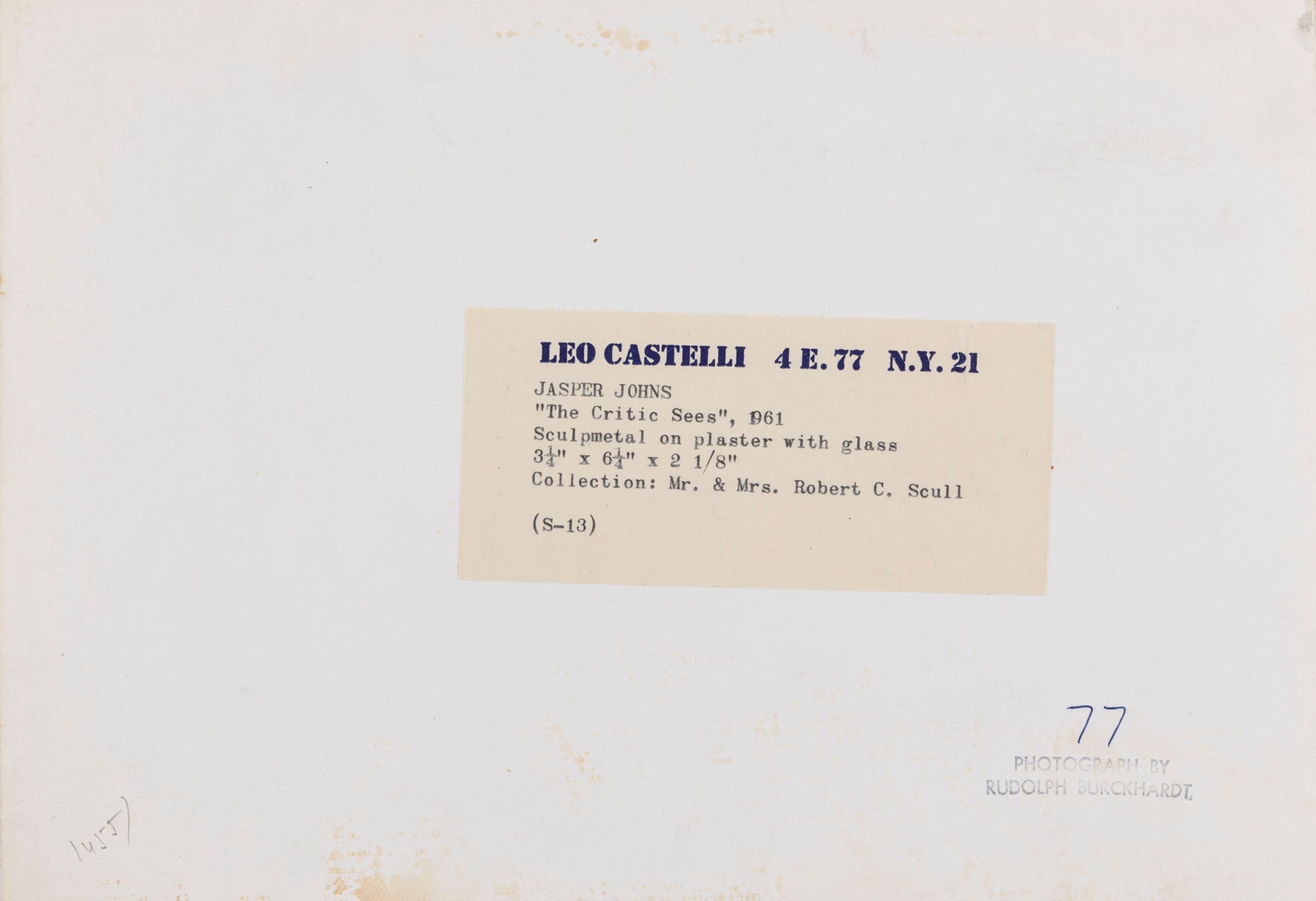 Etichetta al verso Galleria Leo Castelli, New York