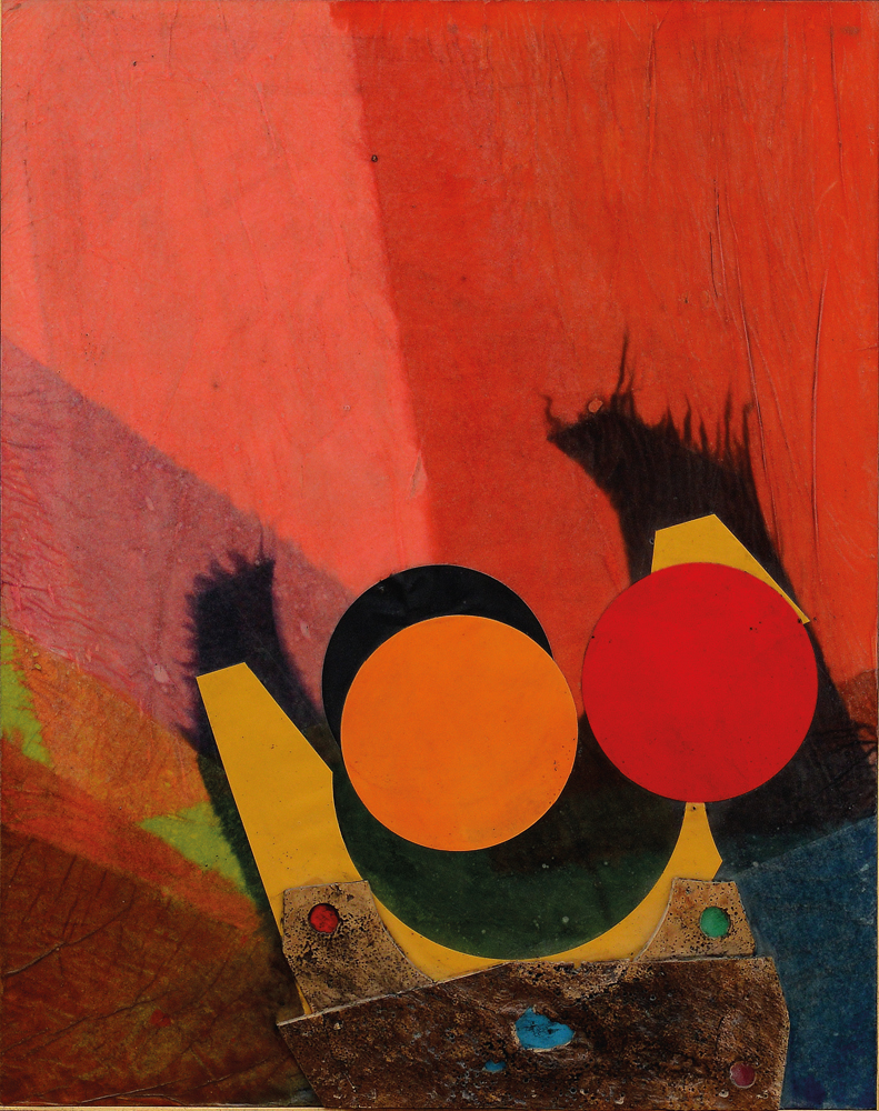 ROBERTO CRIPPA Milano 07/05/1921 - Bresso (Mi) 19/03/1972  Senza titolo tecnica mista, collage e sughero su tavola cm. 92x73, firma, archivio ADN.445 e firma di Roberto Crippa Junior, timbro e firma della Galleria Simone Vallerini Arte Antica e Moderna (PI) al retro, opera registrata presso l'Archivio Roberto Crippa come da dichiarazione a cura di Roberto Crippa Junior su foto.