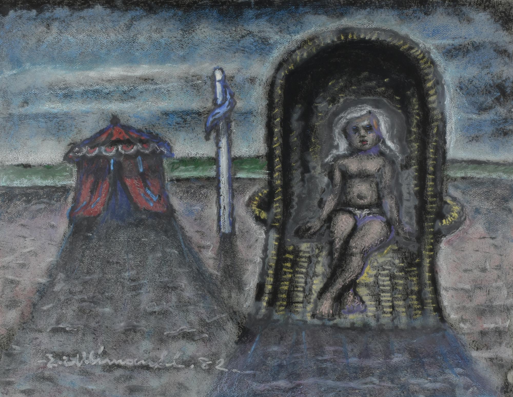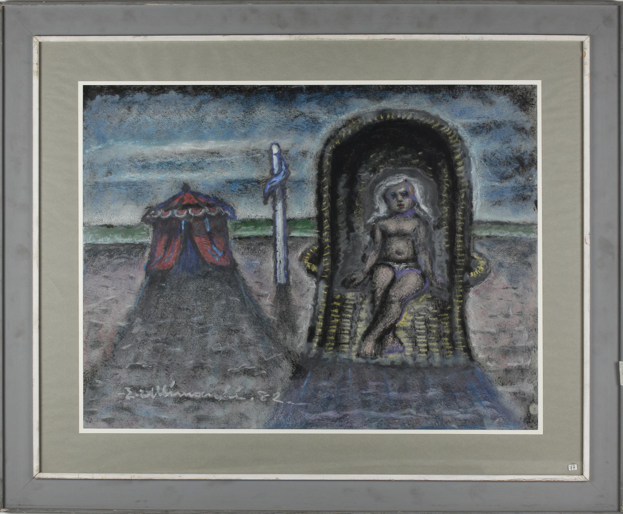 Lot 40 | Enrico Allimandi BAMBINA SEDUTA tecnica mista su carta, cm 50x65 firma e data...