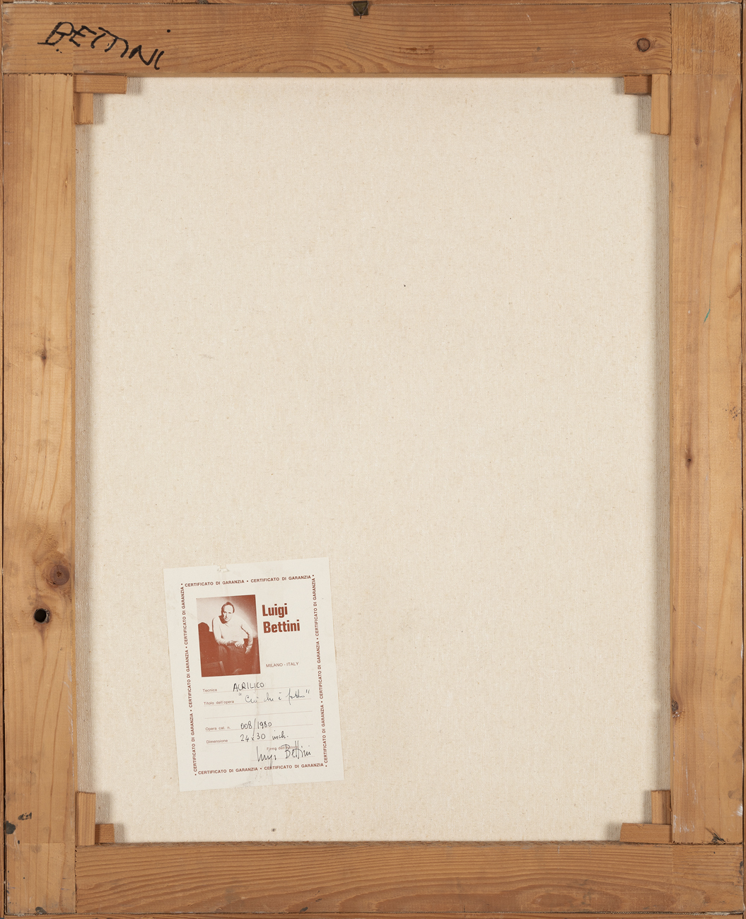 Etichetta dell'Artista al retro