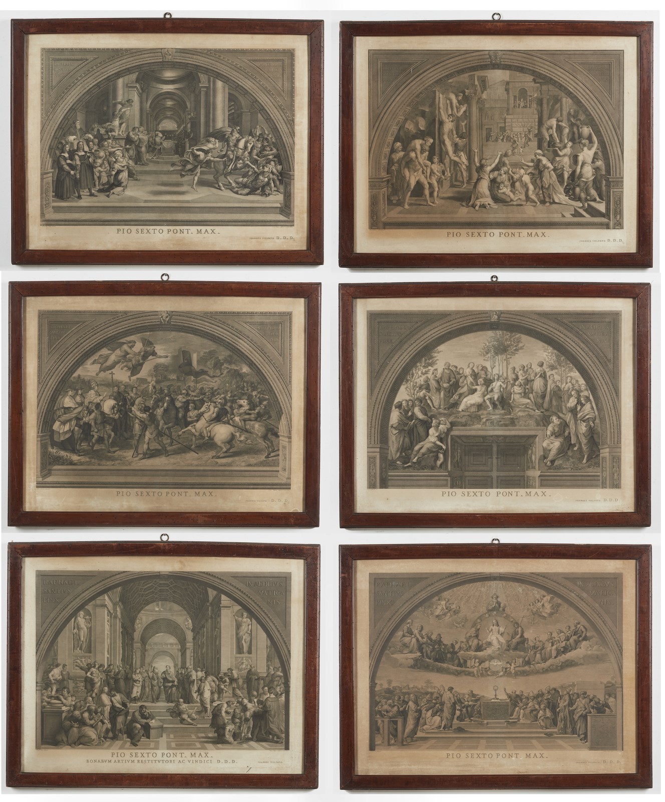 VOLPATO GIOVANNI (1733 - 1803) - Sei incisioni tratte dalle opere di Raffaello Sanzio nelle Stanze Vaticane.