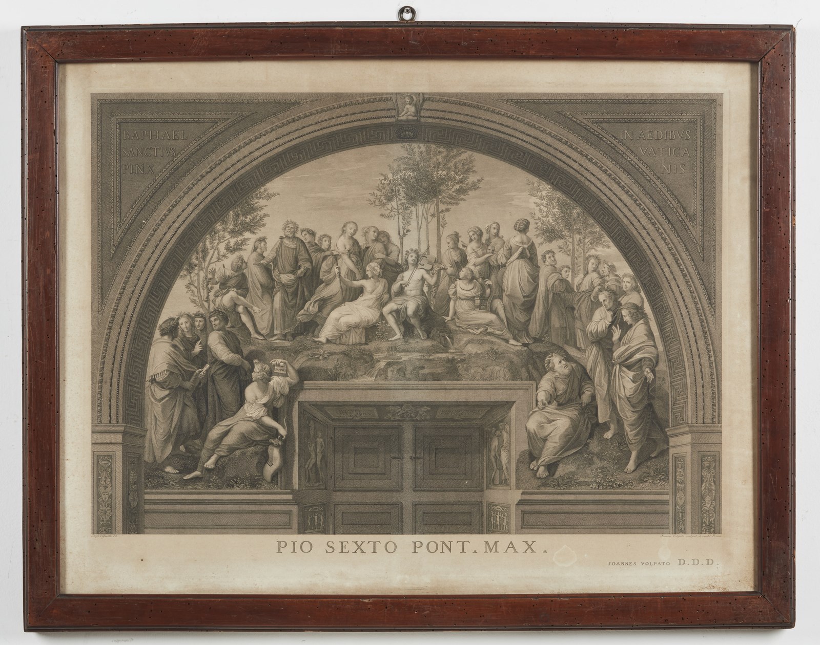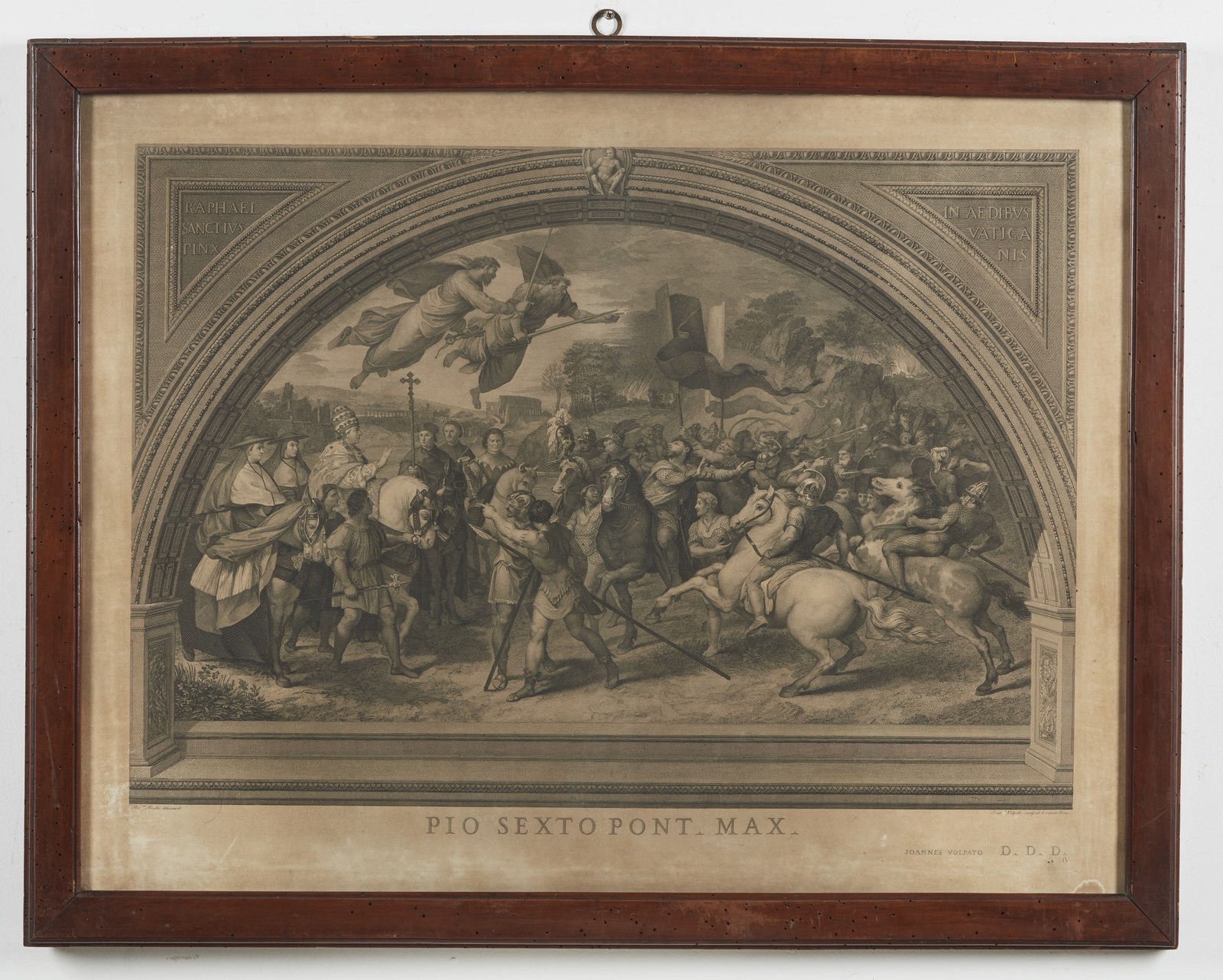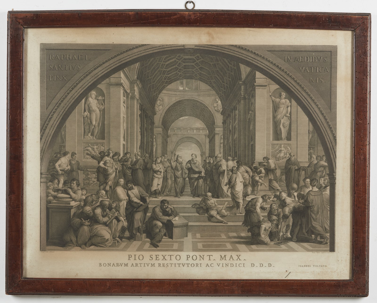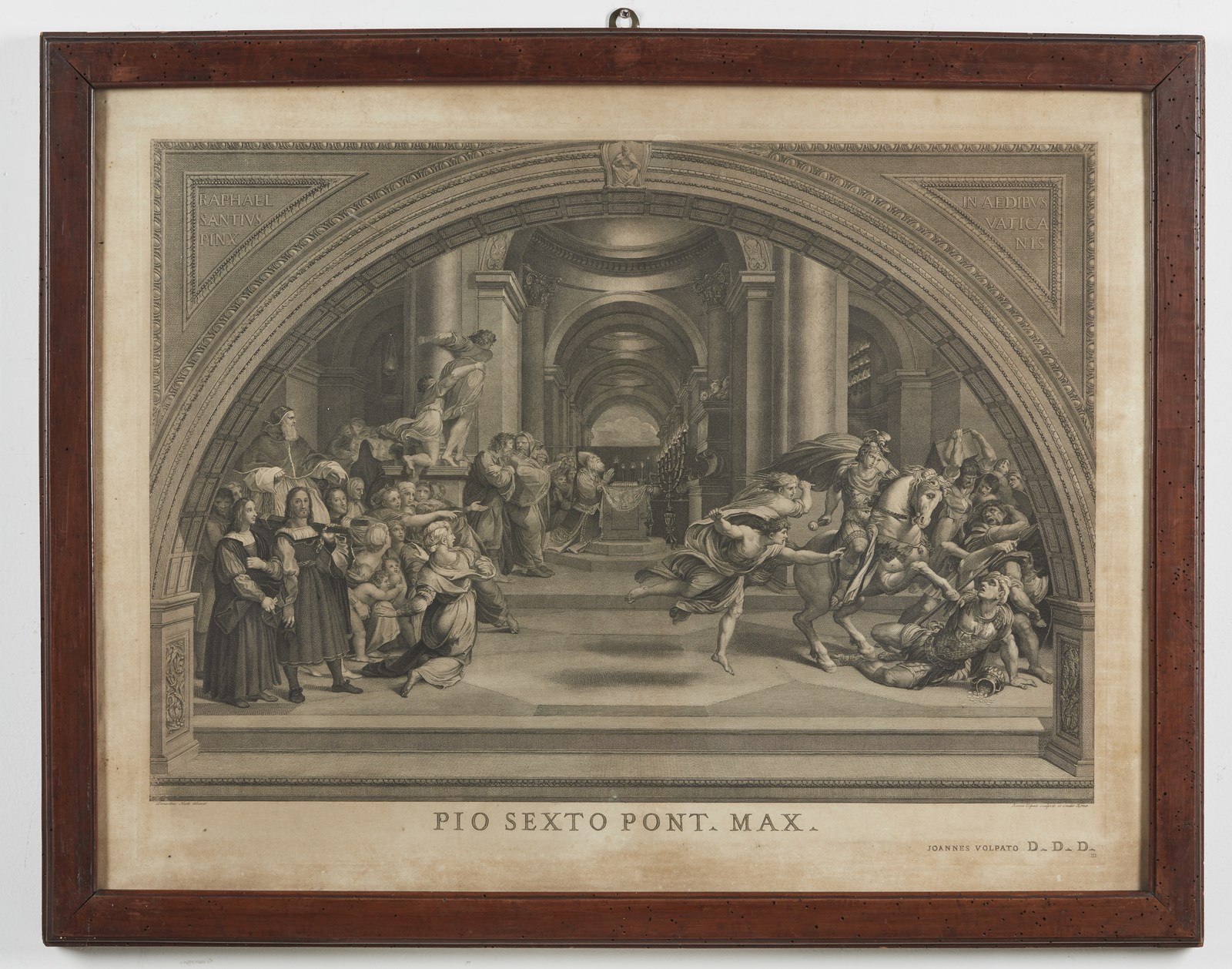 VOLPATO GIOVANNI (1733 - 1803) Sei incisioni tratte dalle opere di Raffaello Sanzio nelle Stanze Vaticane. . Cm 83,00 x 63,00. Difetti. Cornice presente