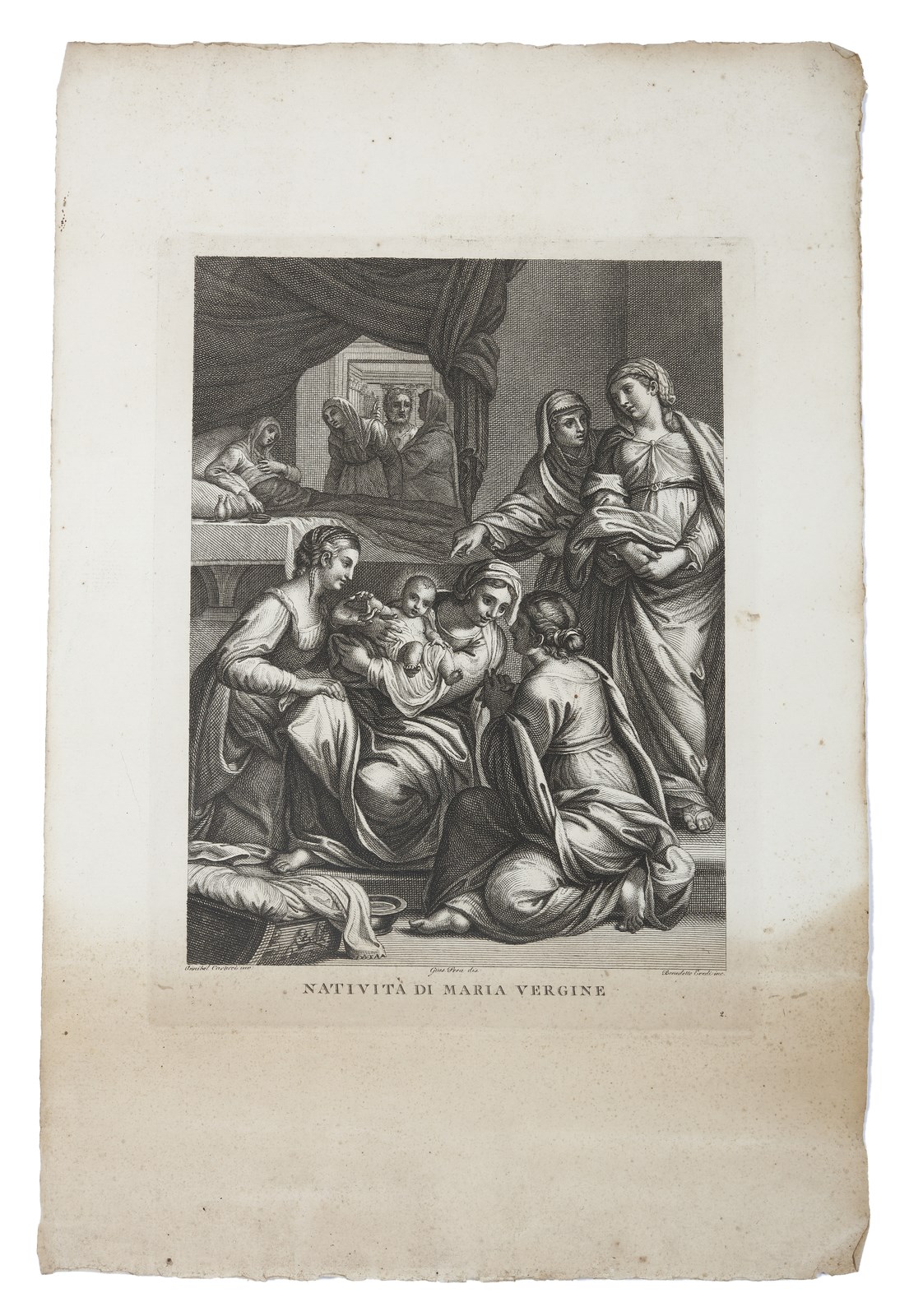 EREDI BENEDETTO (1750 - 1812) Natività di Maria Vergine. . Incisione. Cm 30,00 x 44,50. Da Annibale Carracci. Difetti.