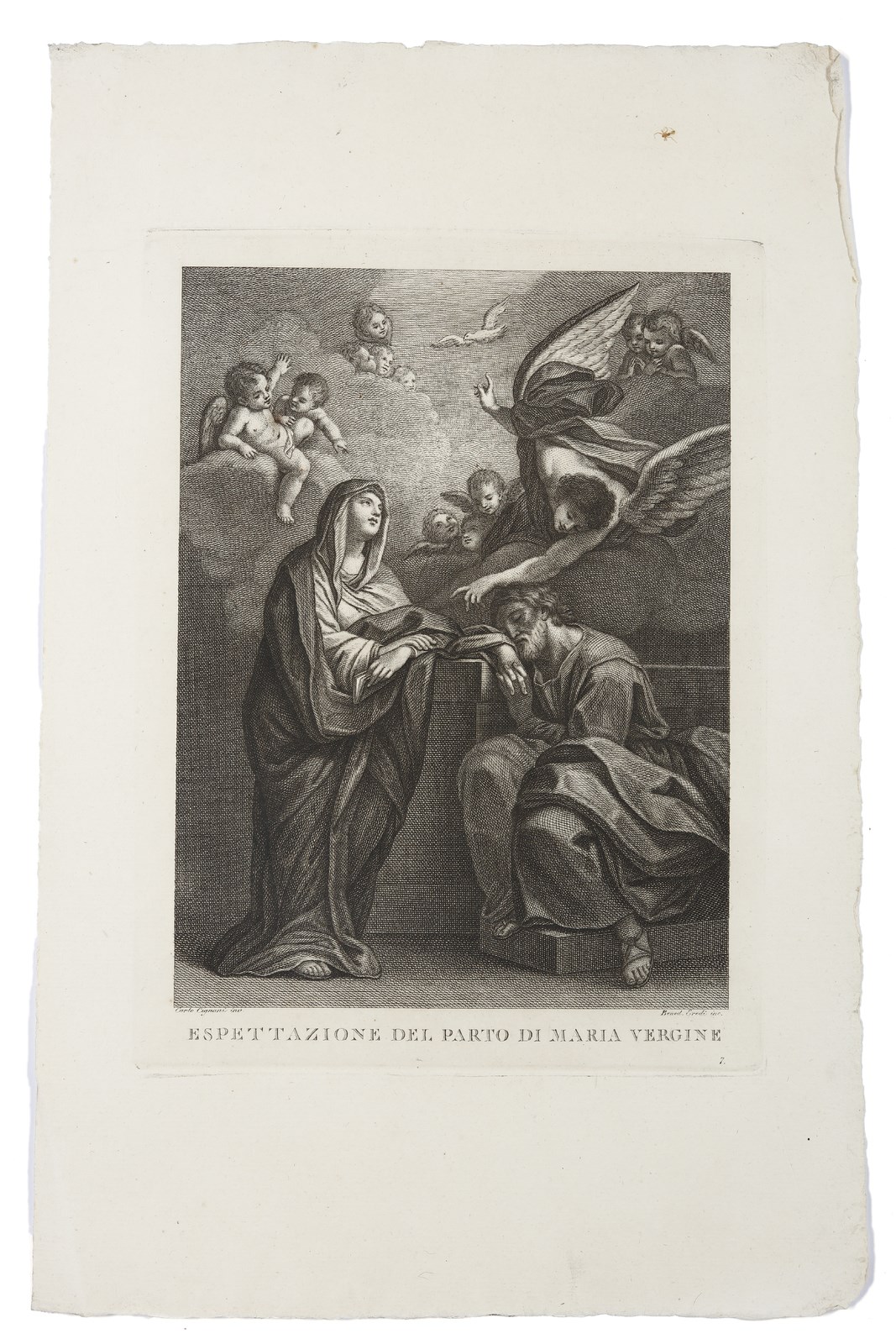 EREDI BENEDETTO (1750 - 1812) Espettazione del parto di Maria Vergine. . Incisione. Cm 28,50 x 44,50. Da Carlo Cignani.
