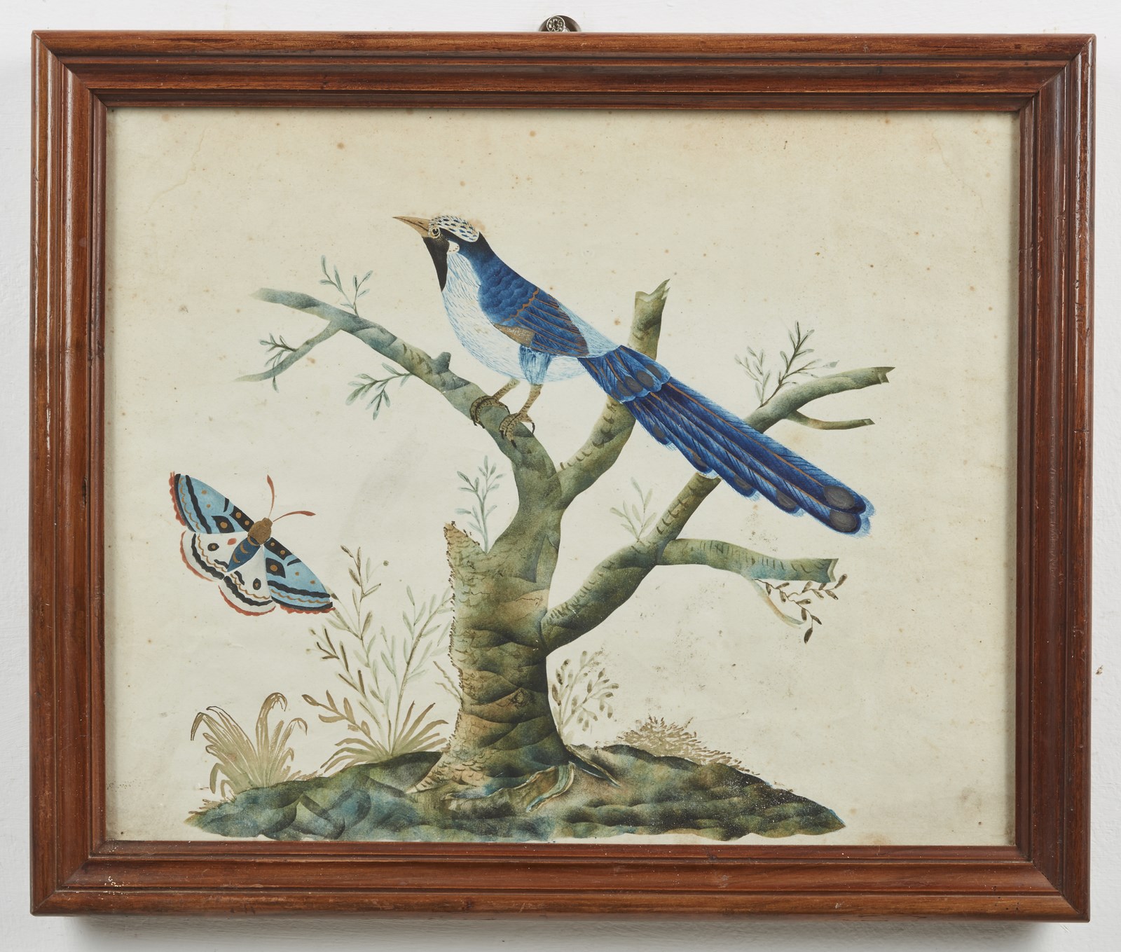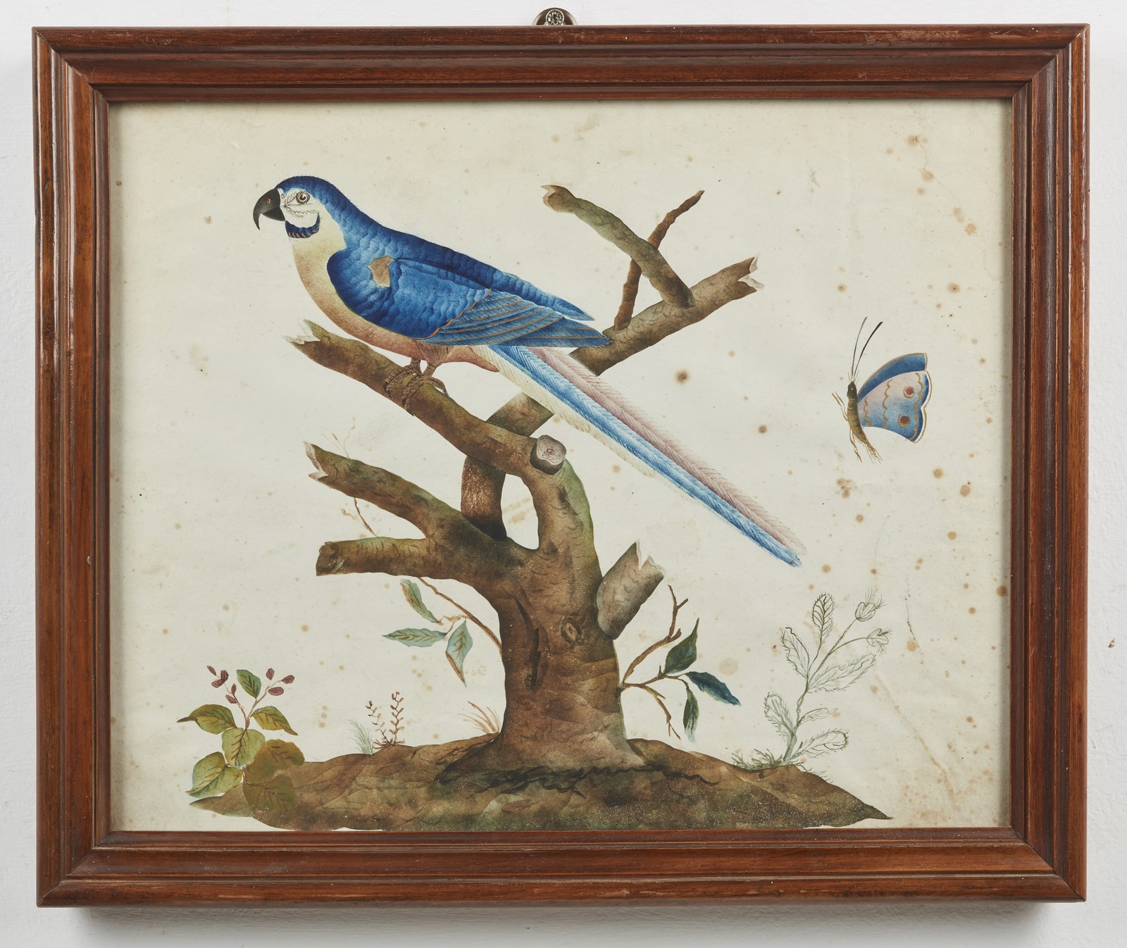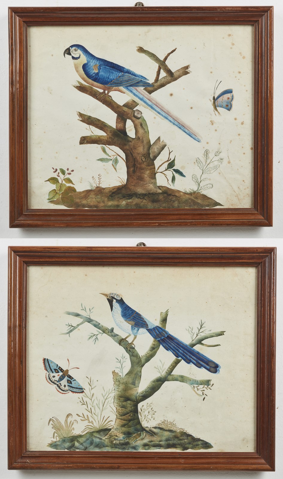 RAINERI CARLO ANTONIO (1765 - 1826) Nello stile di. Coppia di dipinti raffiguranti paesaggi con uccelli. . Tempera su carta. Cm 34,20 x 27,50. . Cornice presente