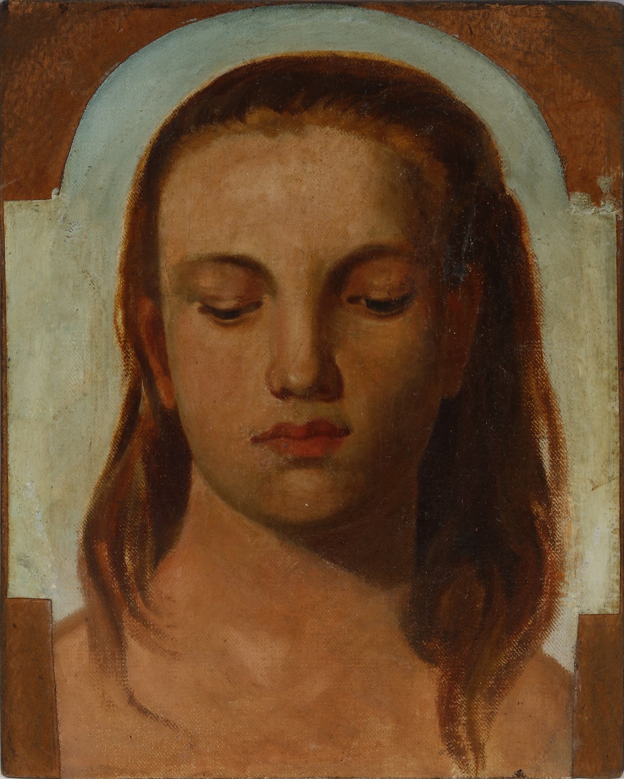 ARTISTA DEL XIX SECOLO Ritratto femminile. . Olio su tela applicata su cartoncino. Cm 16,00 x 21,00. . Cornice presente