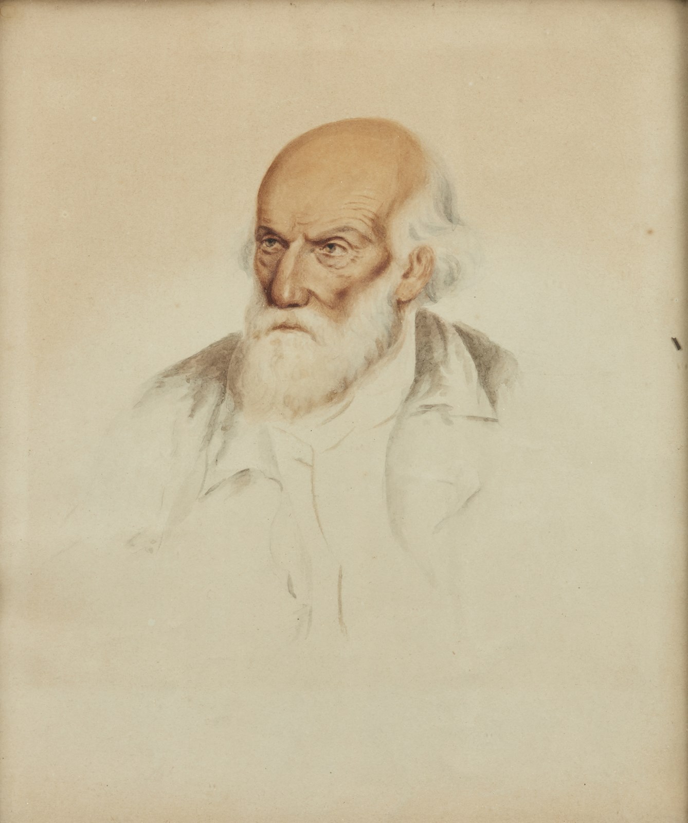 ARTISTA DEL XIX SECOLO Ritratto di anziano. Acquerello su carta. Cm 18,00 x 21,50. . Cornice presente