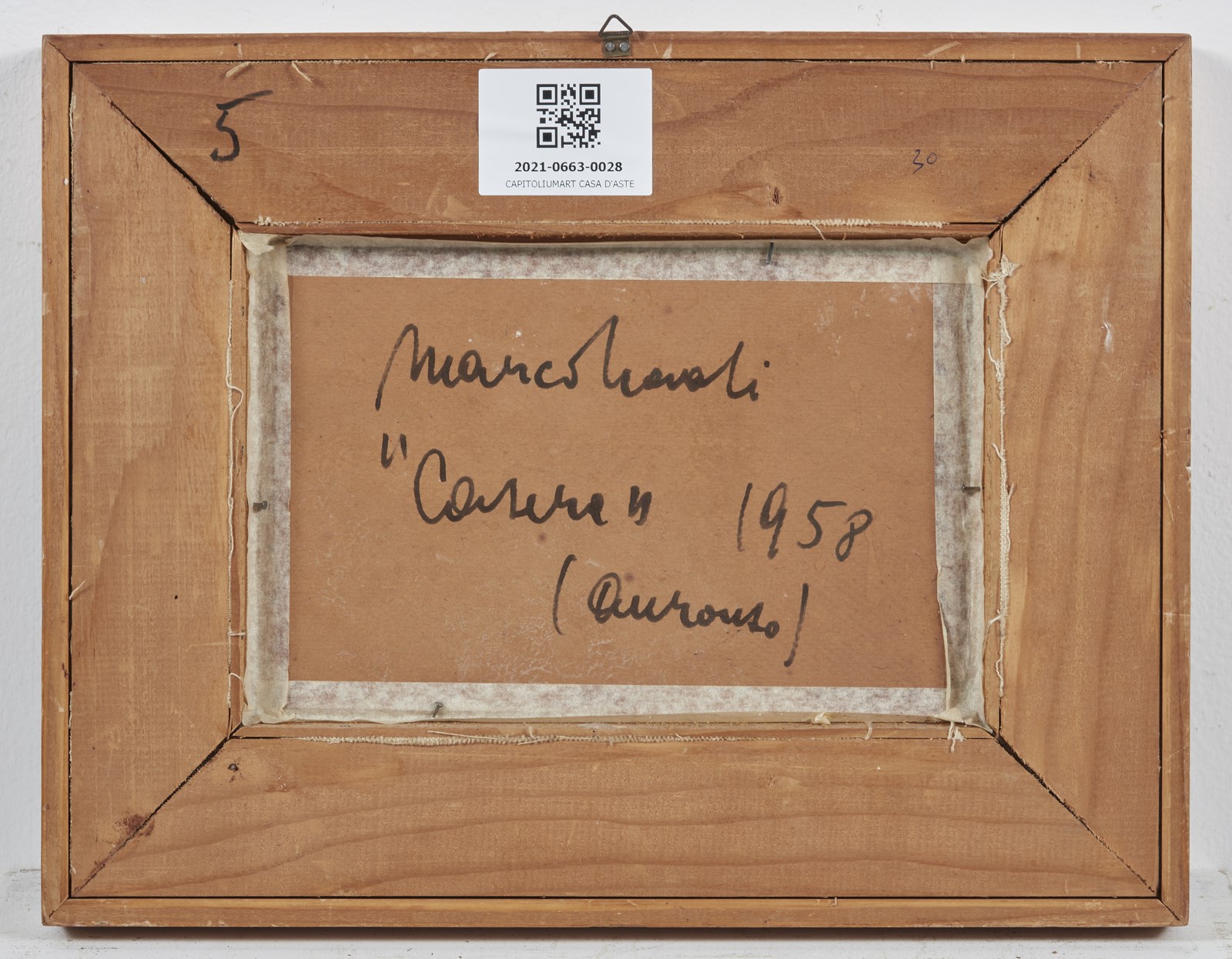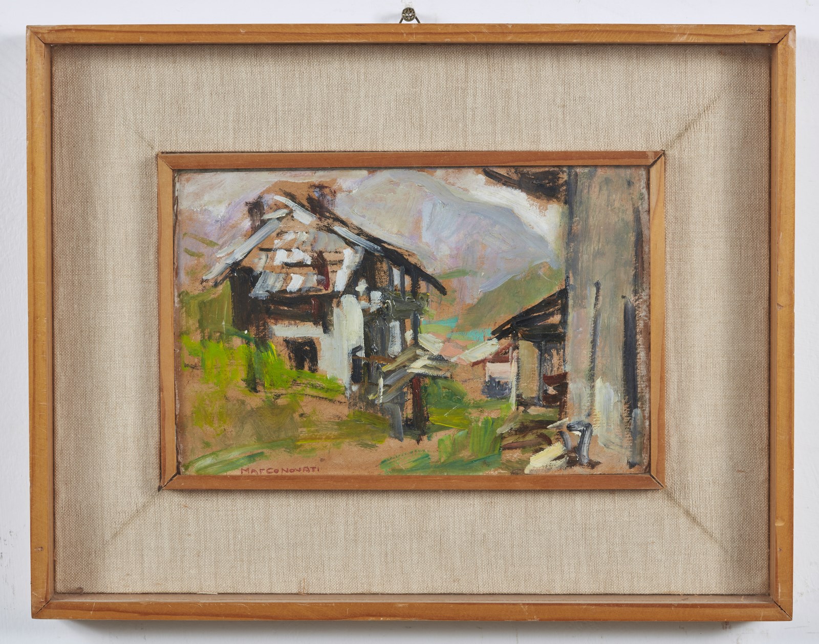 NOVATI MARCO (1895 - 1975) Casera. Olio su cartone. Cm 21,50 x 14,50. Firmato in basso a sinistra. Al retro firmato, intitolato e datato 1958. Cornice presente