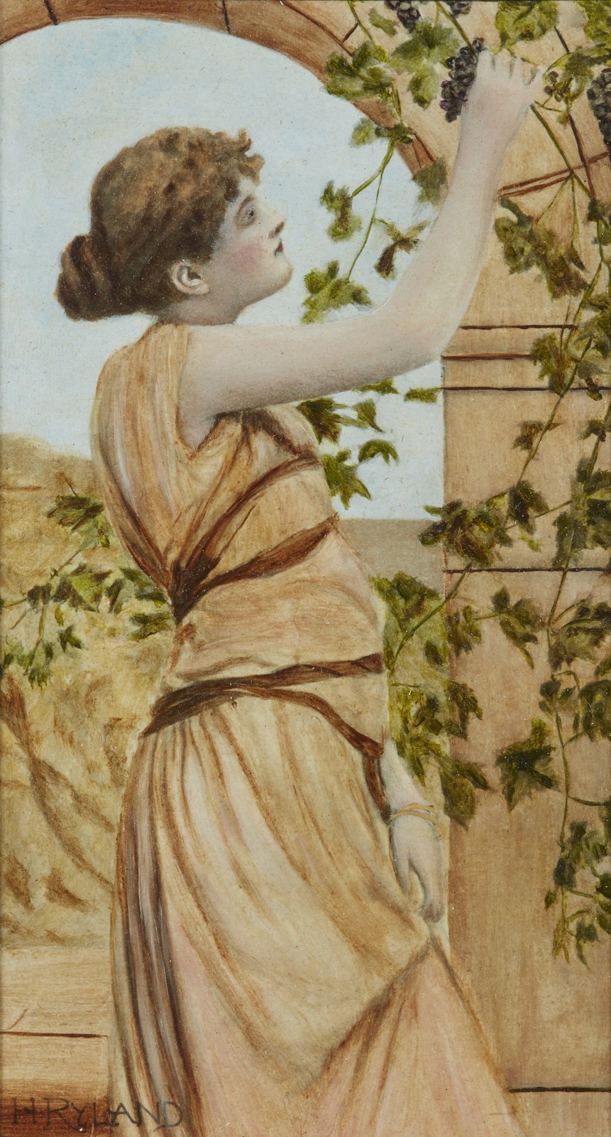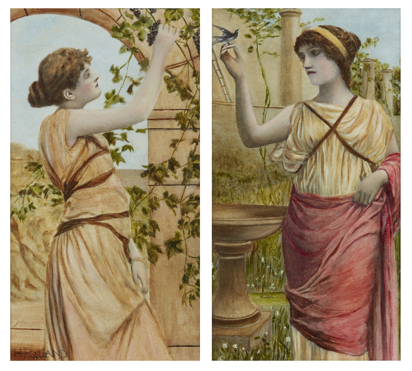RYLAND HENRY (1856 - 1924) - Coppia di dipinti raffiguranti ritratto di fanciulle in abiti classici.