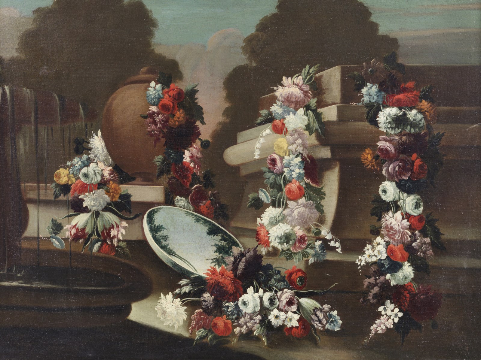 LOPEZ GASPARE (1650 - 1732) - Natura morta con ghirlanda di fiori.