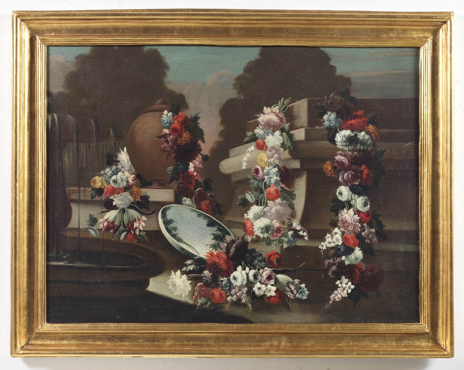 LOPEZ GASPARE (1650 - 1732) Natura morta con ghirlanda di fiori. Olio su tela . Cm 99,50 x 73,50. . Cornice presente