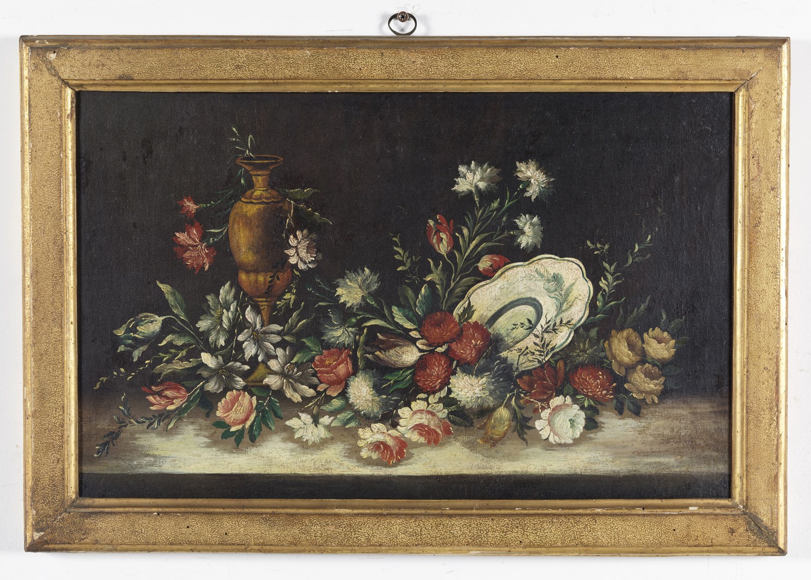 ARTISTA DEL XVIII SECOLO Natura morta di fiori. Olio su tela . Cm 52,50 x 33,50. . Cornice presente