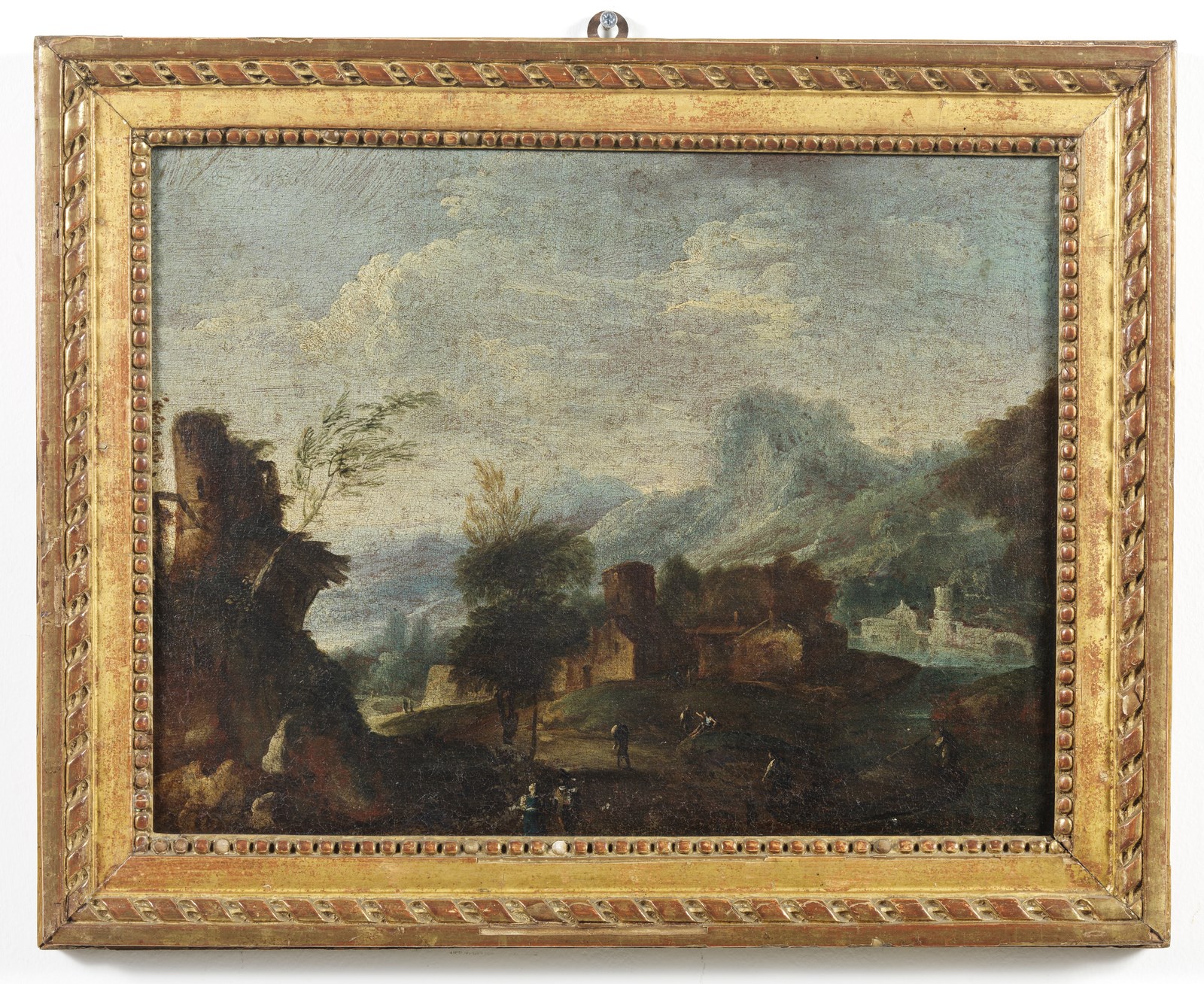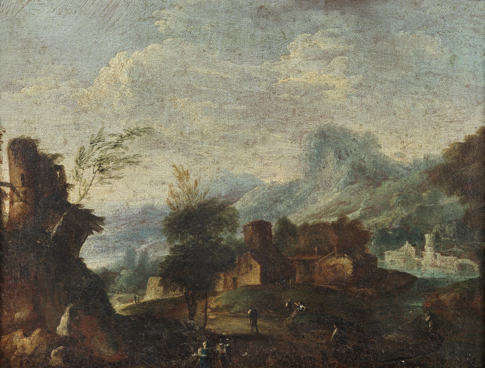 ARTISTA VENETO DEL XVII SECOLO - Paesaggio con personaggi.
