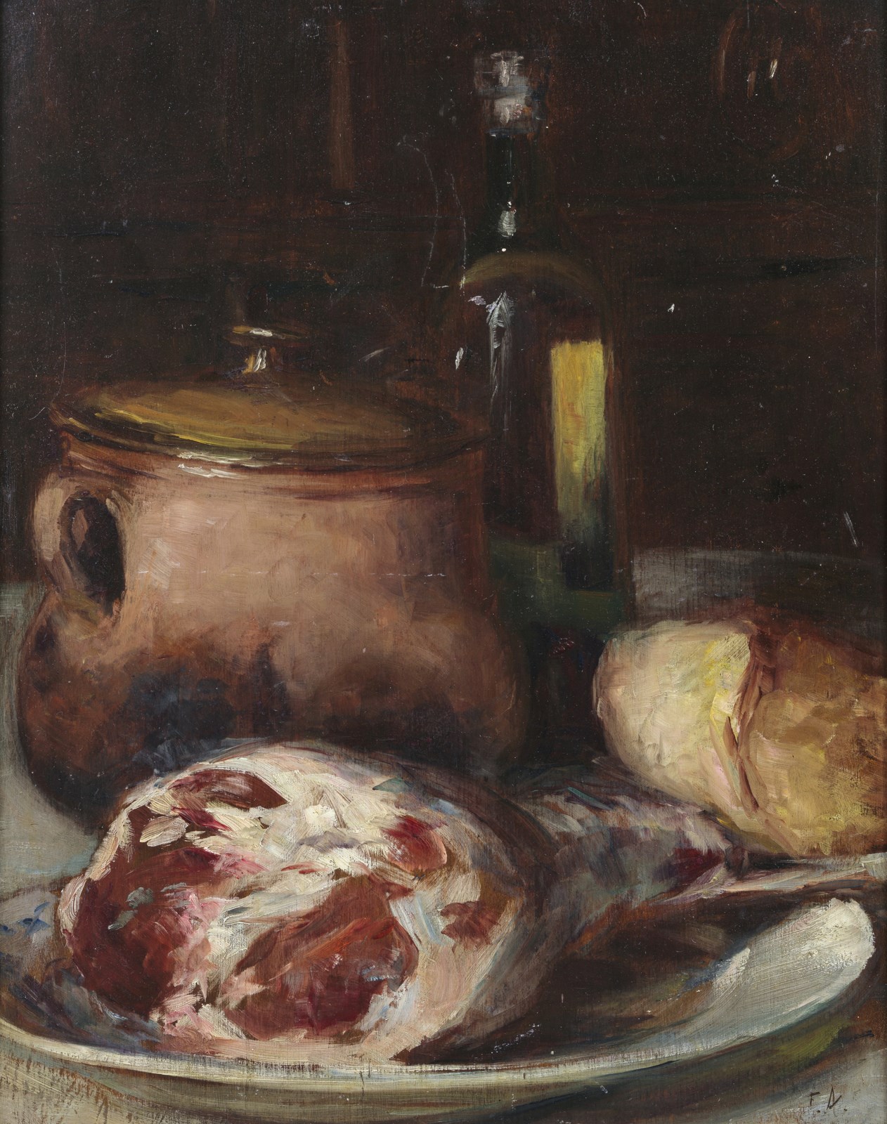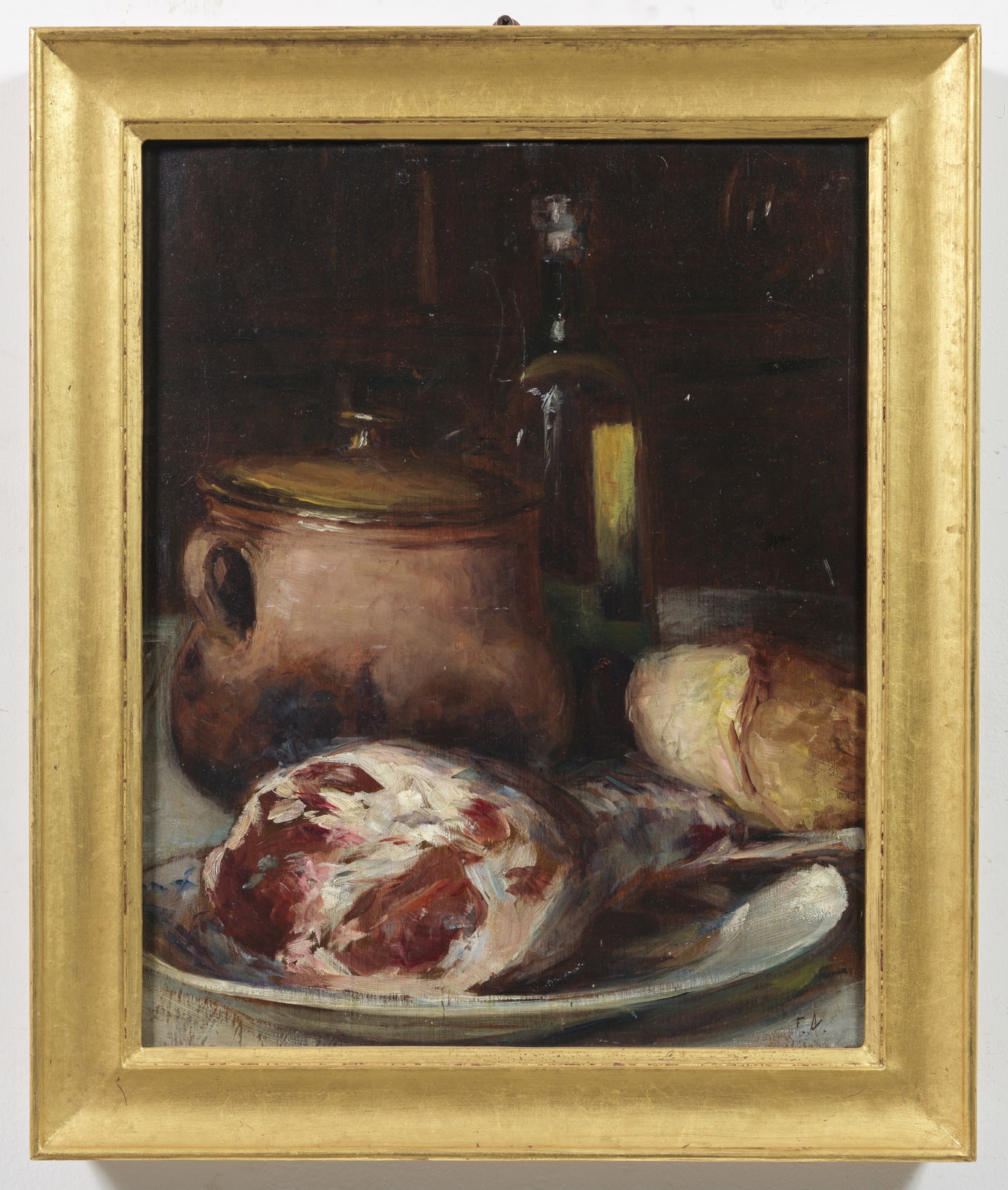 ARTISTA FRANCESE DEL XIX SECOLO Natura morta. Olio su tavola. Cm 37,00 x 43,00. Monogrammato F.D. in basso a destra. . Cornice presente