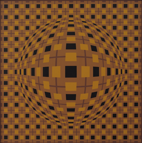 VICTOR VASARELY Pecs 1908 - Parigi 15/03/1997 Andor, 1983-88 acrilici su tela cm. 100x100, firma in basso al centro, titolo, firma, anno, archivio n° 3780 e timbro della Collezione Roversi al retro, dichiarazione d'autenticità con numero di registrazione 941 a cura di Michèle-Catherine Vasarely su foto, dichiarazione d'autenticità con numero di registrazione 3780 a cura di André Vasarely su foto.