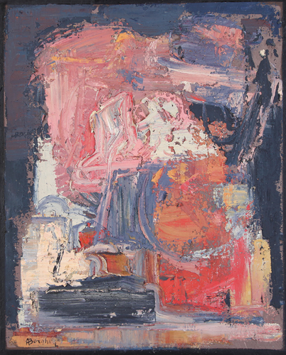 ALFONSO BORGHI Campegine (Re) 03/12/1944 La mia casa scossa dall'oceano, 1999 olio su tela cm. 100x80, firma in basso a sinistra, titolo e firma al retro, pubblicato sul catalogo della mostra "Alfonso Borghi, Visioni", tenutasi dal 25 marzo al 18 aprile 1999, presso la Galleria Spazio Linati (MI), pagina 37.