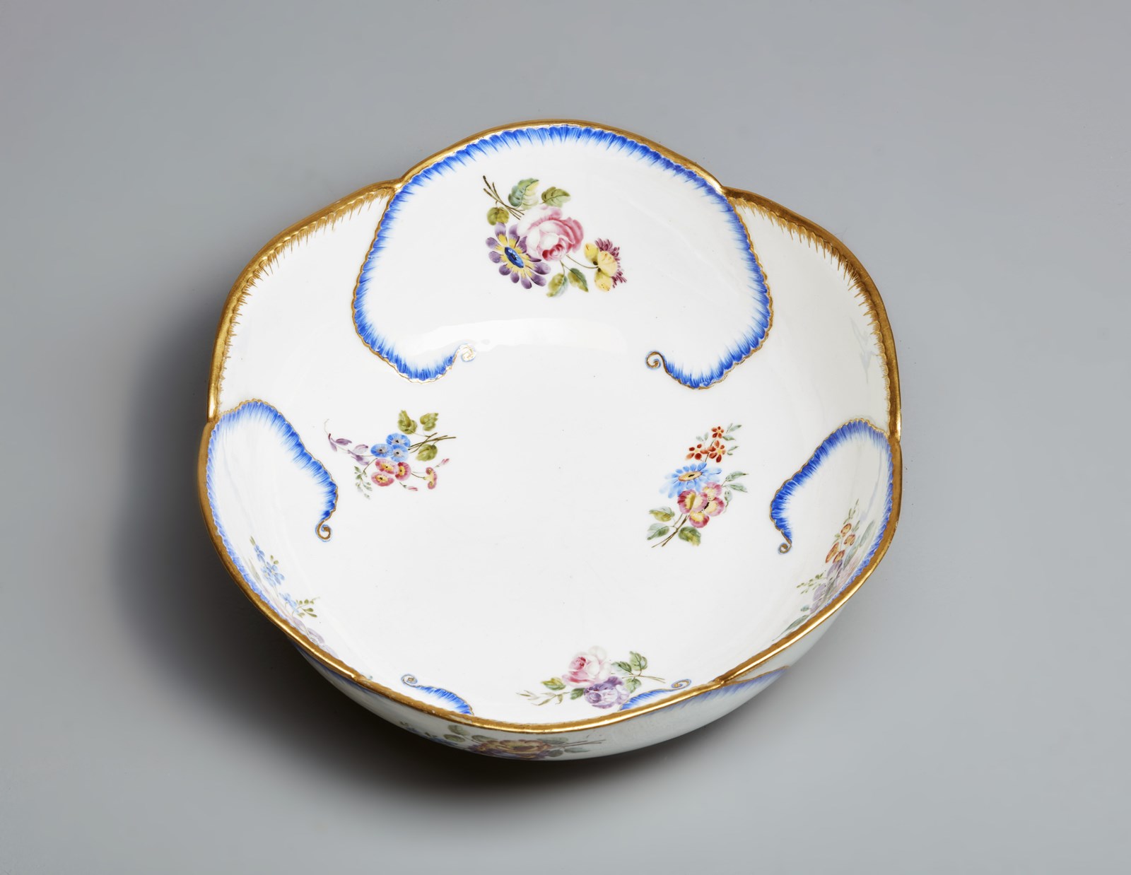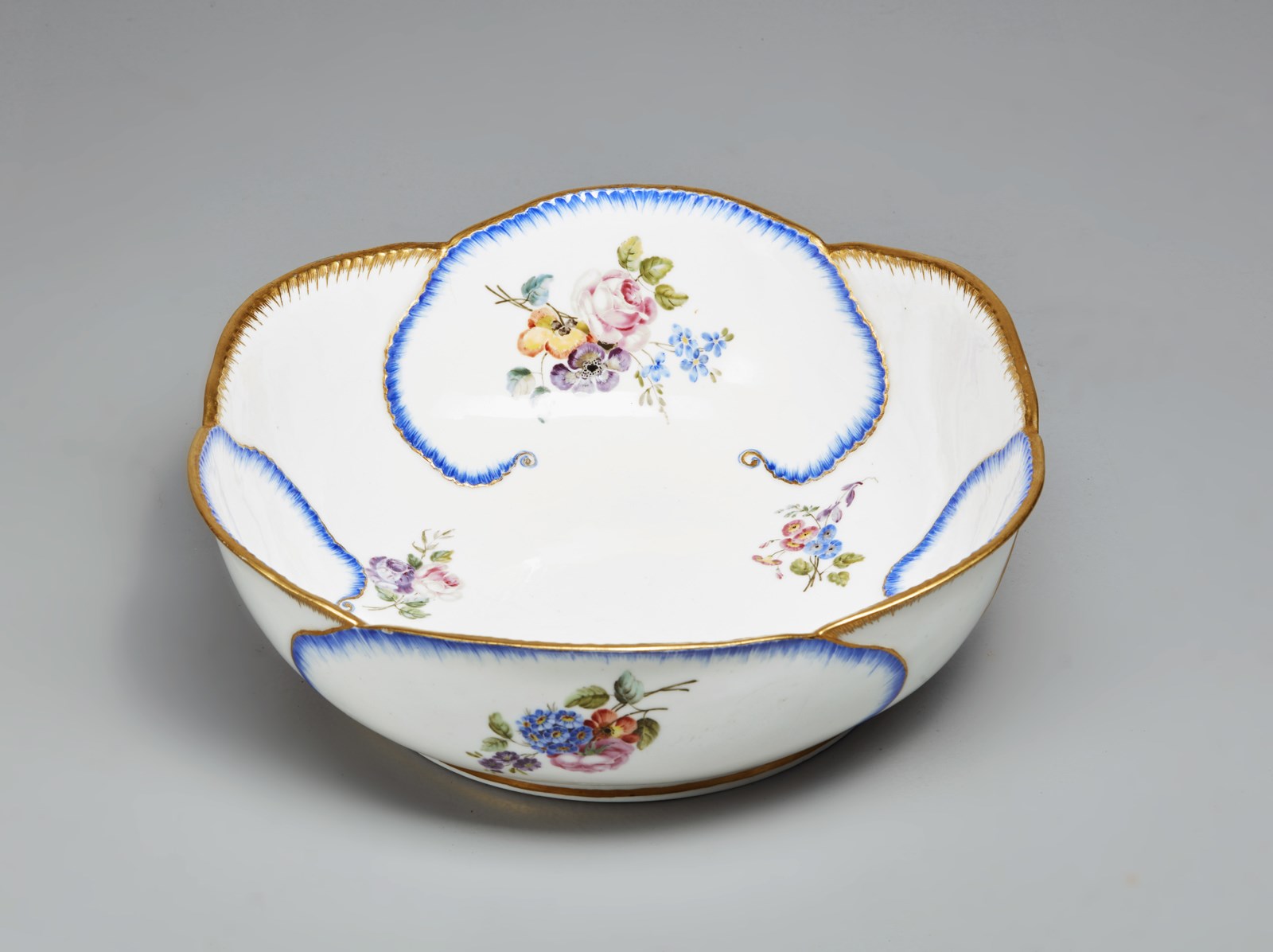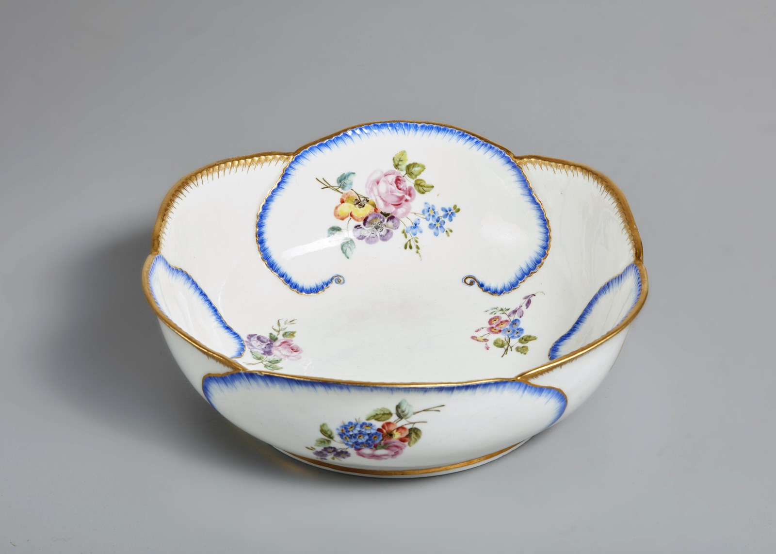 MANIFATTURA DI SEVRES DEL XVIII SECOLO - Bacile in porcellana policroma e parzialmente dorata, decorato con elementi floreali.