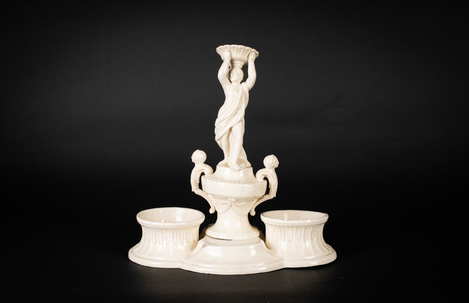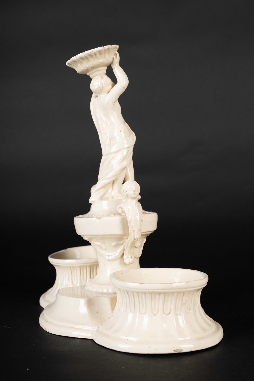 MANIFATTURA VENETA DEL XIX SECOLO - Oliera in terraglia con figura centrale.
