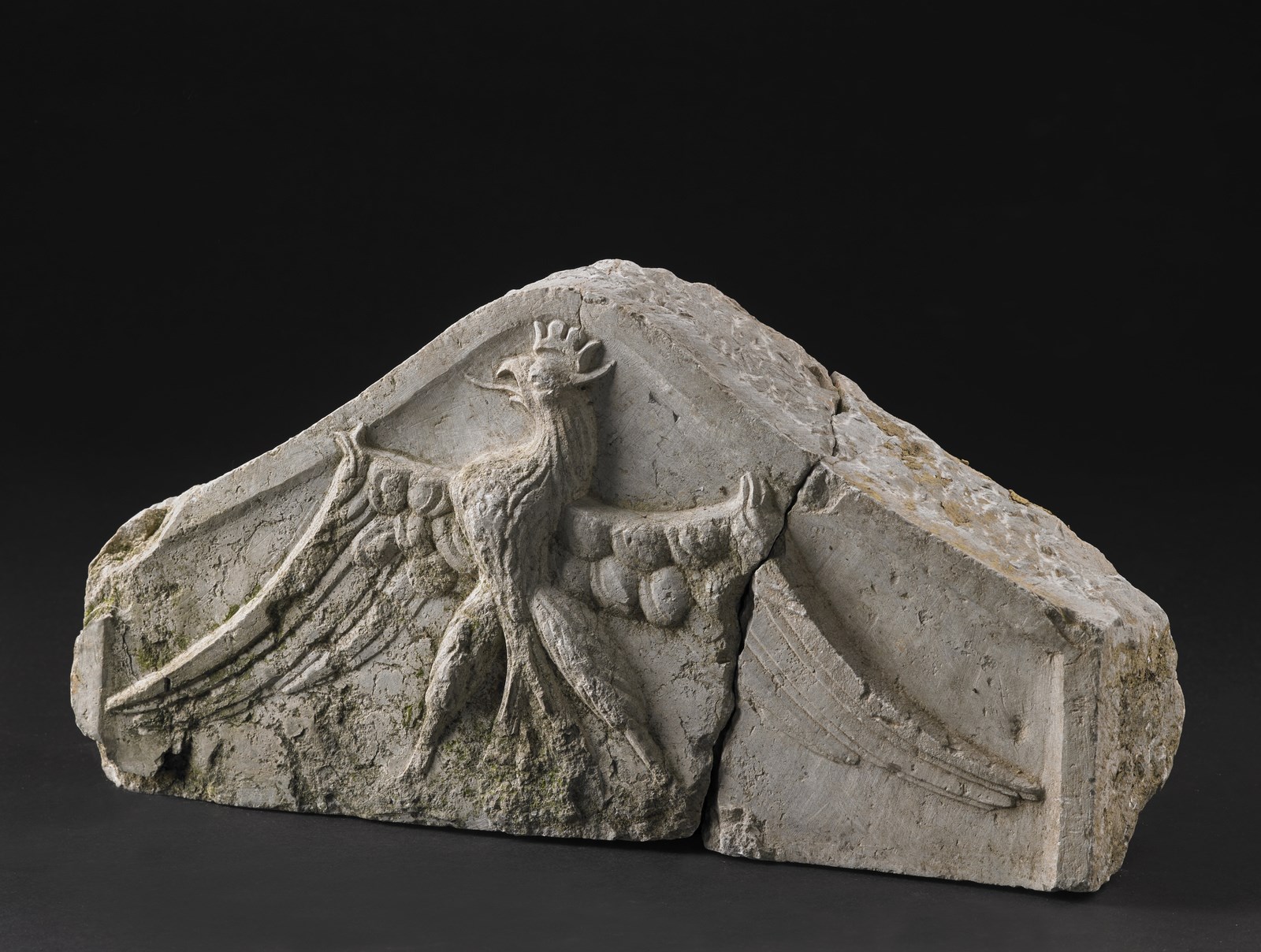MANIFATTURA DEL XVII SECOLO - Piccolo fregio araldico in pietra raffigurante aquila.