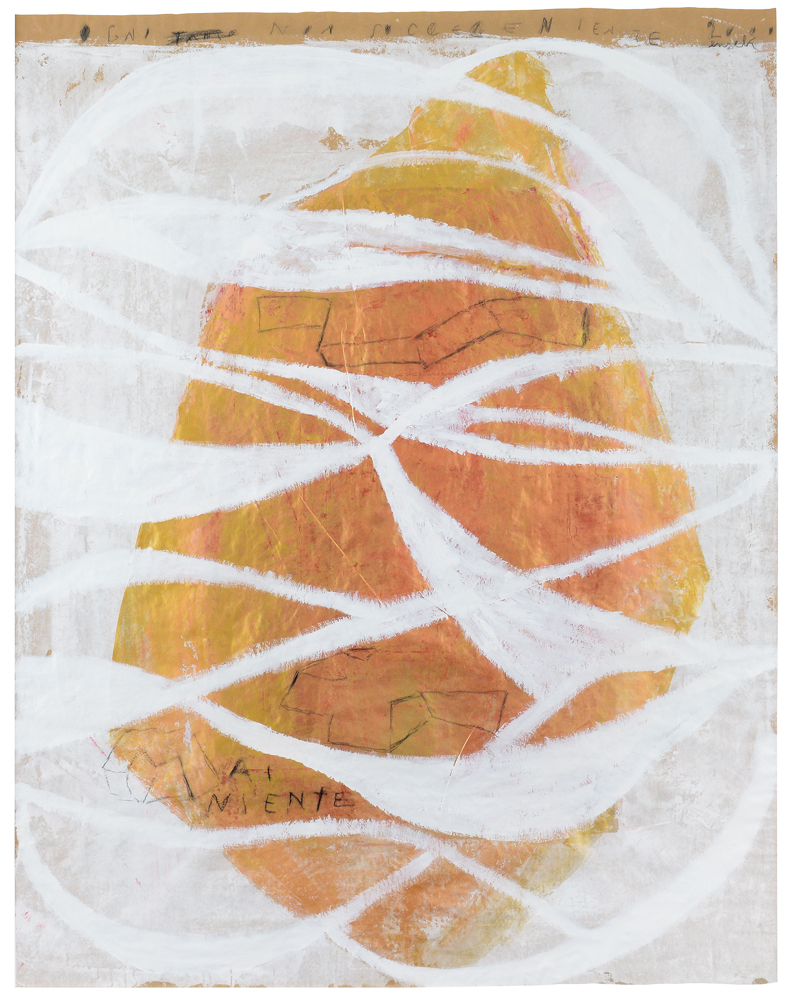 PITTORE DEL XX SECOLO Ogni tanto non succede niente, 2001 tecnica mista su carta cm. 133x99, titolo, anno e firma indecifrabile in alto.
