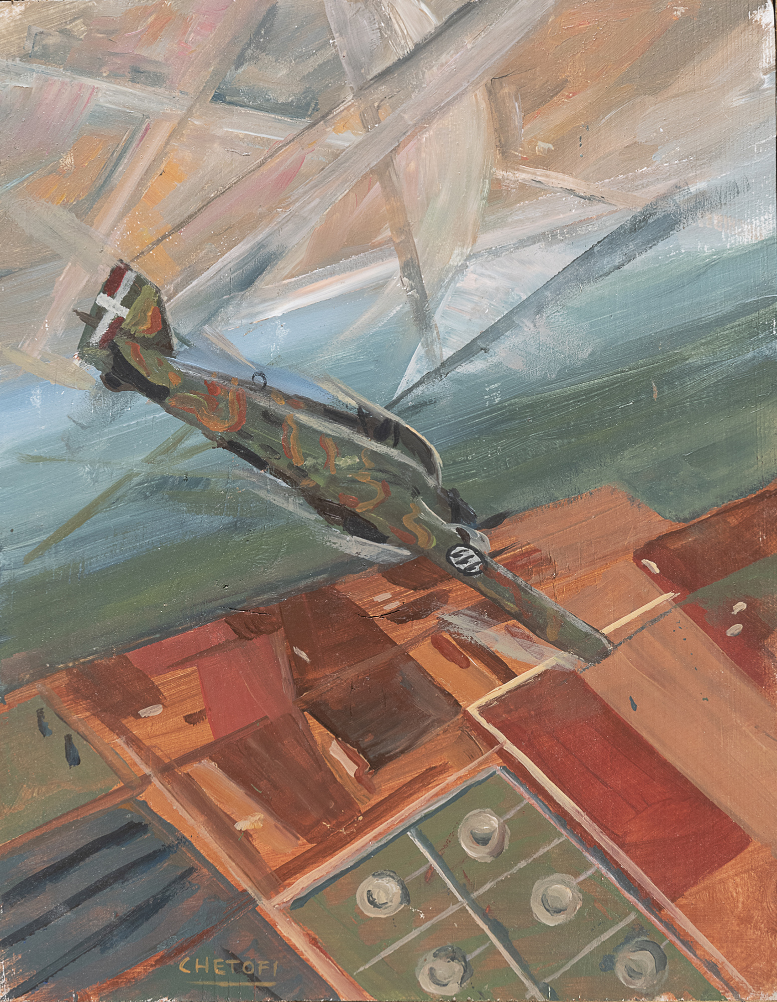 GIOVANNI CHETOFI, Aereopittura con aereo Savoia Marchetti, 1942 circa