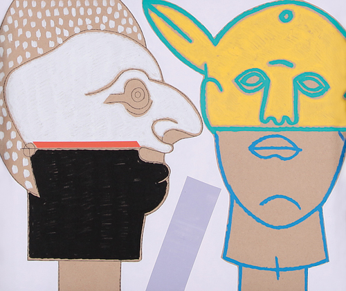 CONCETTO POZZATI Vo' Vecchio (Pd) 01/12/1935 Teatralità, 2003 smalto e acrilico su tavola pirografata cm. 50x60, titolo, firma e anno al retro, opera registrata presso l'archivio Concetto Pozzati al n° 1590/07 come da dichiarazione su foto.