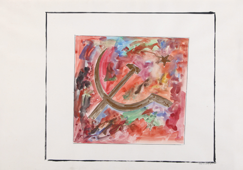 FRANCO ANGELI Roma 14/05/1935 - Roma 12/11/1988 Falce e martello, anni '60 tecnica mista su carta cm. 70x100, firma in basso a destra, pubblicato sul catalogo della mostra "Franco Angeli e Renato Mambor, percorso anni '60-'70", tenutasi dal 25 maggio al 30 giugno 1991 presso la Galleria Ducale (MO).
