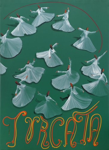 ALDO MONDINO Torino 04/10/1938 - 10/03/2005  Turcata, 1992 olio su linoleum cm. 190x140, opera non firmata, etichetta della Galleria Rizziero Arte (PE) al retro, dichiarazione d'autenticità e provenienza della Galleria Rizziero Arte (PE) su foto, opera priva di cornice.