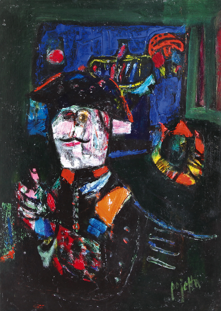 GUIDO PAJETTA Monza (Mi) 08/02/1898 - Milano 15/02/1987 Carabiniere, 1970 acrilico su cartone cm. 70x50, firma in basso a destra, opera registrata presso l'archivio Guido Pajetta come da dichiarazione su foto.