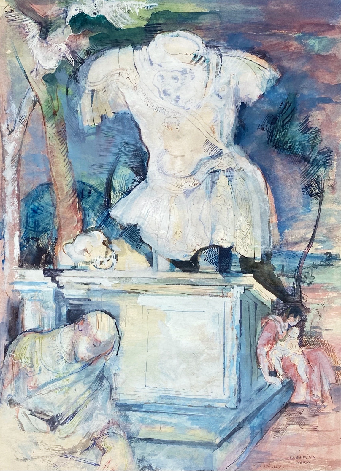 TISCHLER VICTOR Vienna (Austria) 1890 Sleeping Hero 1930 Mista su carta...