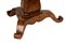 in noce intarsiato con piano circolare e fusto a balaustro su tre gambe mosse