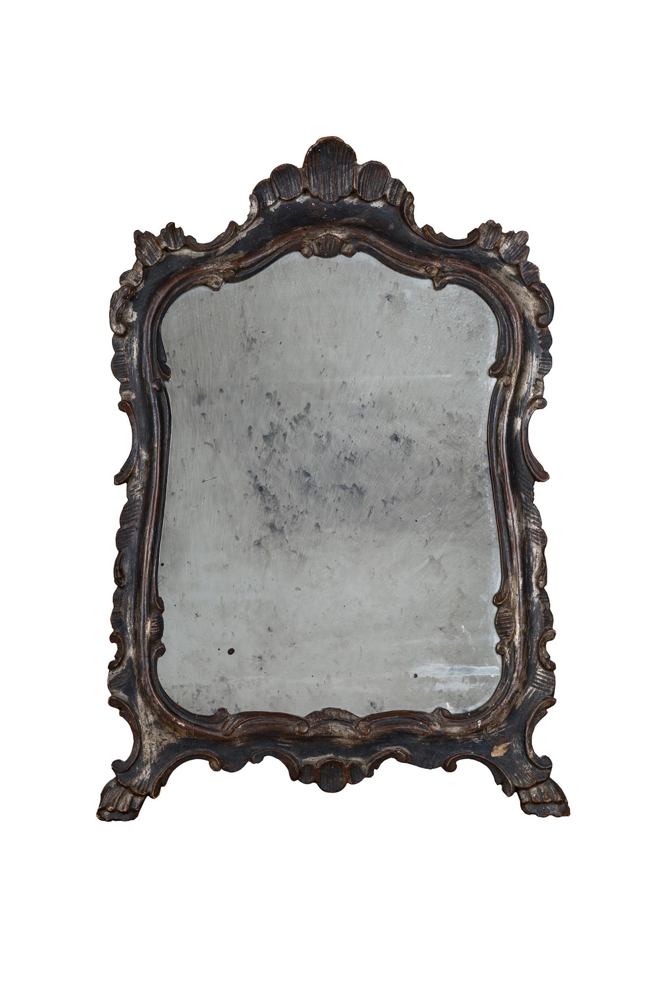 in legno dipinto a mecca di linea sagomata, scolpita e intagliata a rocailles, piedi ferini