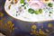 scatola in porcellana policroma dipinta a mano, con decori a motivi floreali entro riserva centrale, lumeggiature dorate