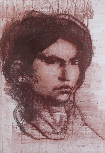 PIETRO ANNIGONI Milano 07/06/1910 - Firenze 28/10/1988  Volto sanguigna su carta cm. 58x40, firma in basso a destra, dichiarazione d'autenticità dell'artista su foto.