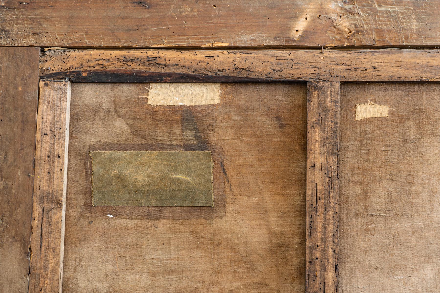 Stato di conservazione: alla luce ultravioletta il dipinto non presenta alcuna traccia di restauro. La tela, che non è stata rifoderata, presenta alcuni fori e cadute di colore sparse.