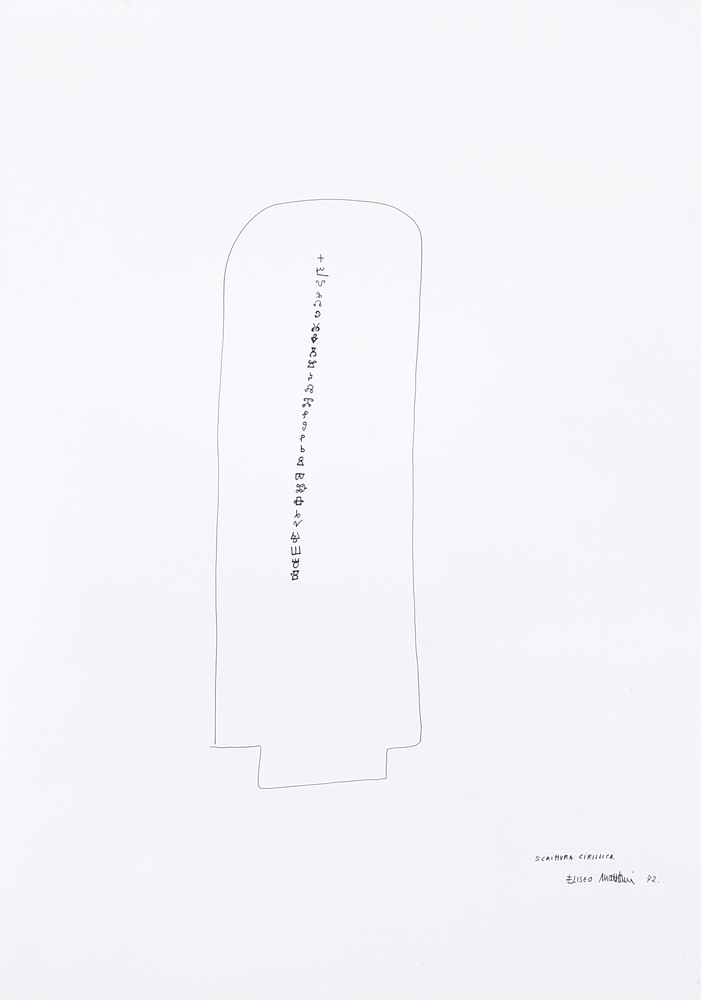 ELISEO MATTIACCI Cagli Di Pesaro (Ps) 13/11/1940 Scrittura cirillica, 1972 pennarelli su carta cm. 70x50, firma, titolo e anno in basso a destra, pubblicato sul catalogo n° 1410 della Finarte Semenzato, Venezia, 11 maggio 2008.