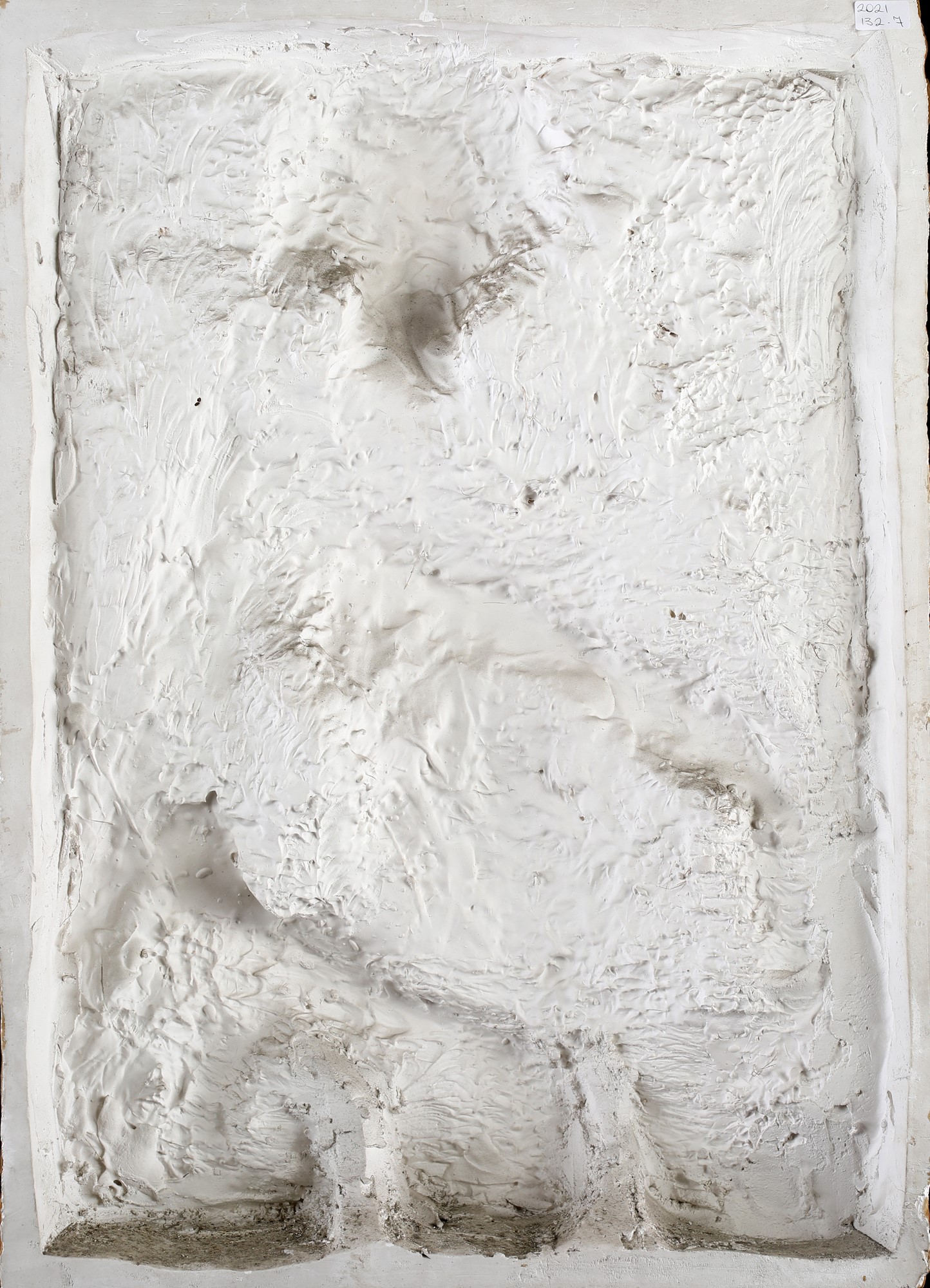 Bassorilievo in cera su anima in gesso raffigurante Santa Caterina; firmato in basso a destra cm 67x47