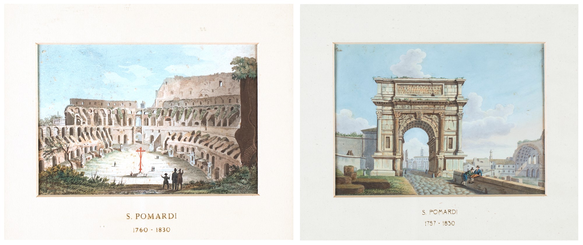 Simone Pomardi a) Veduta interna dell'anfiteatro Flavio b) L'arco di Tito...