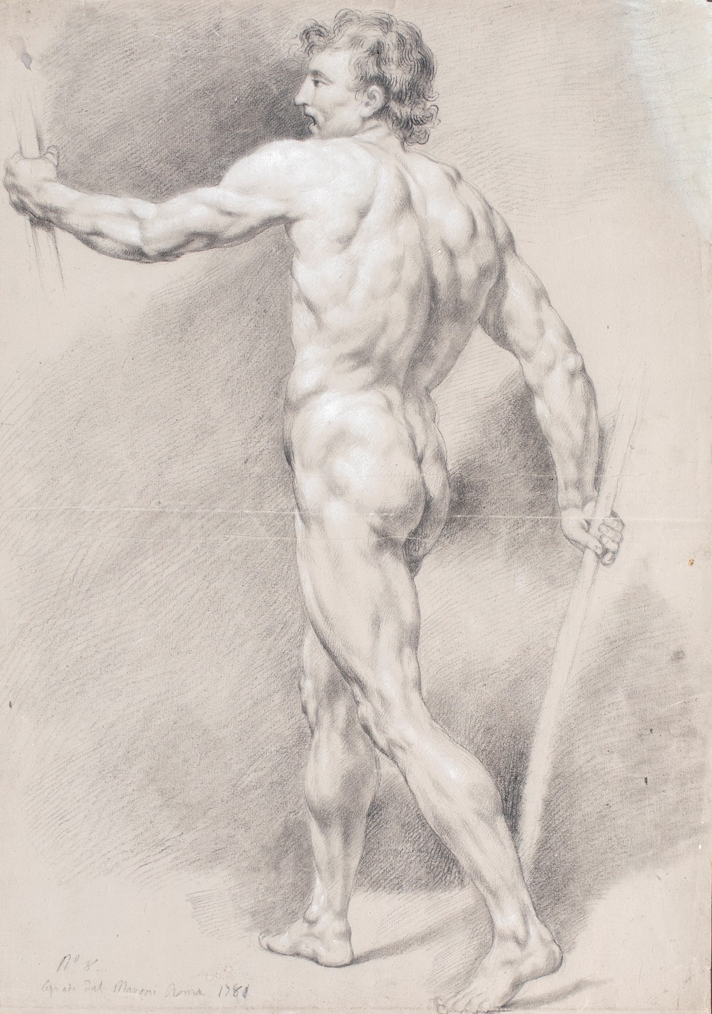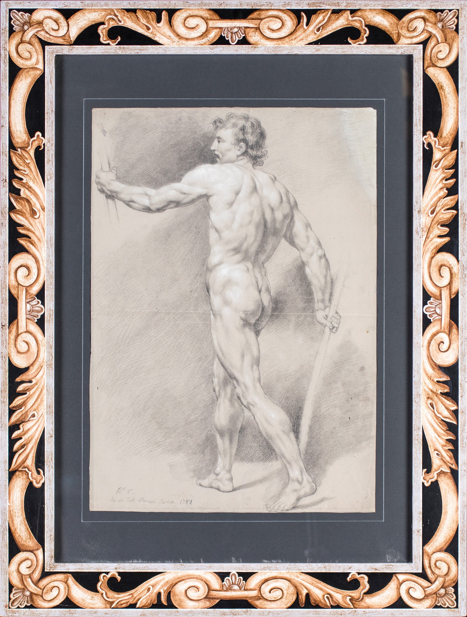 Pittore Romano del XVIII secolo Studio di nudo virile matita su carta cm...