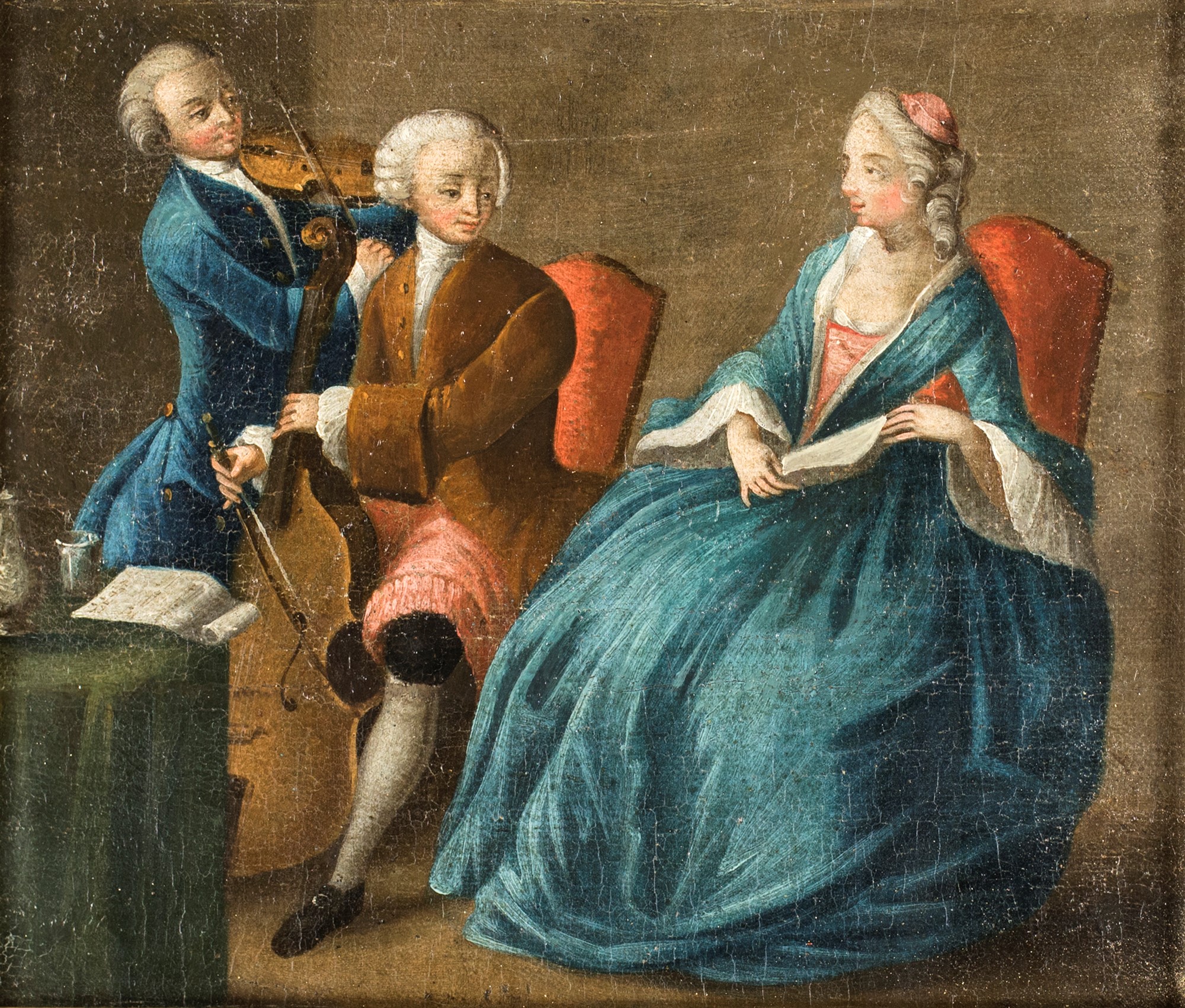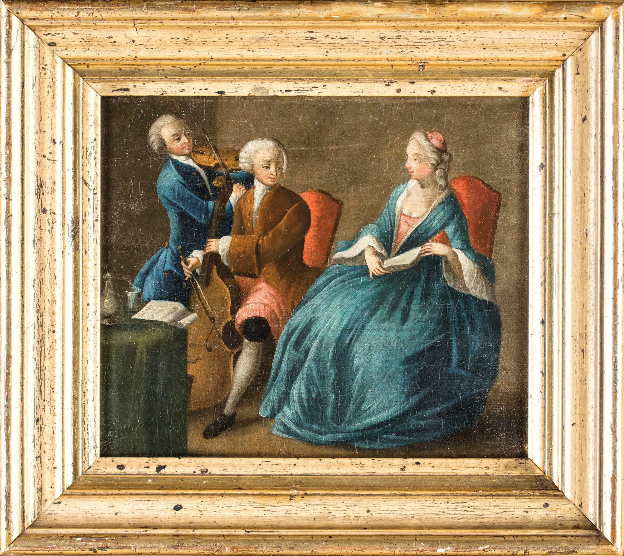 Pietro Longhi (attribuito) Lezione di musica olio su tela cm 23x27 - con la...